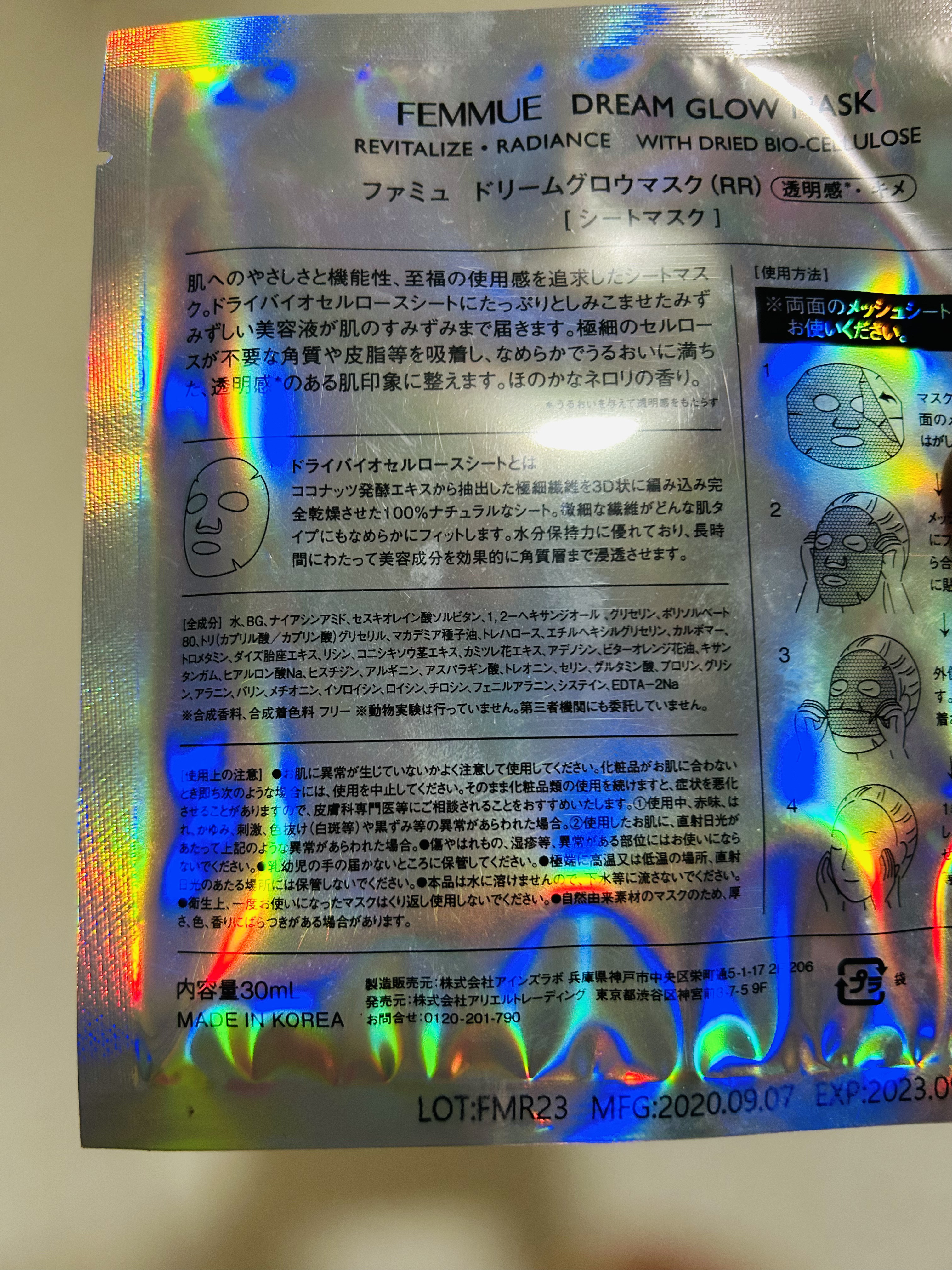 商品詳細情報FEMMUE ドリームグロウマスク RR(透明感・キメ)