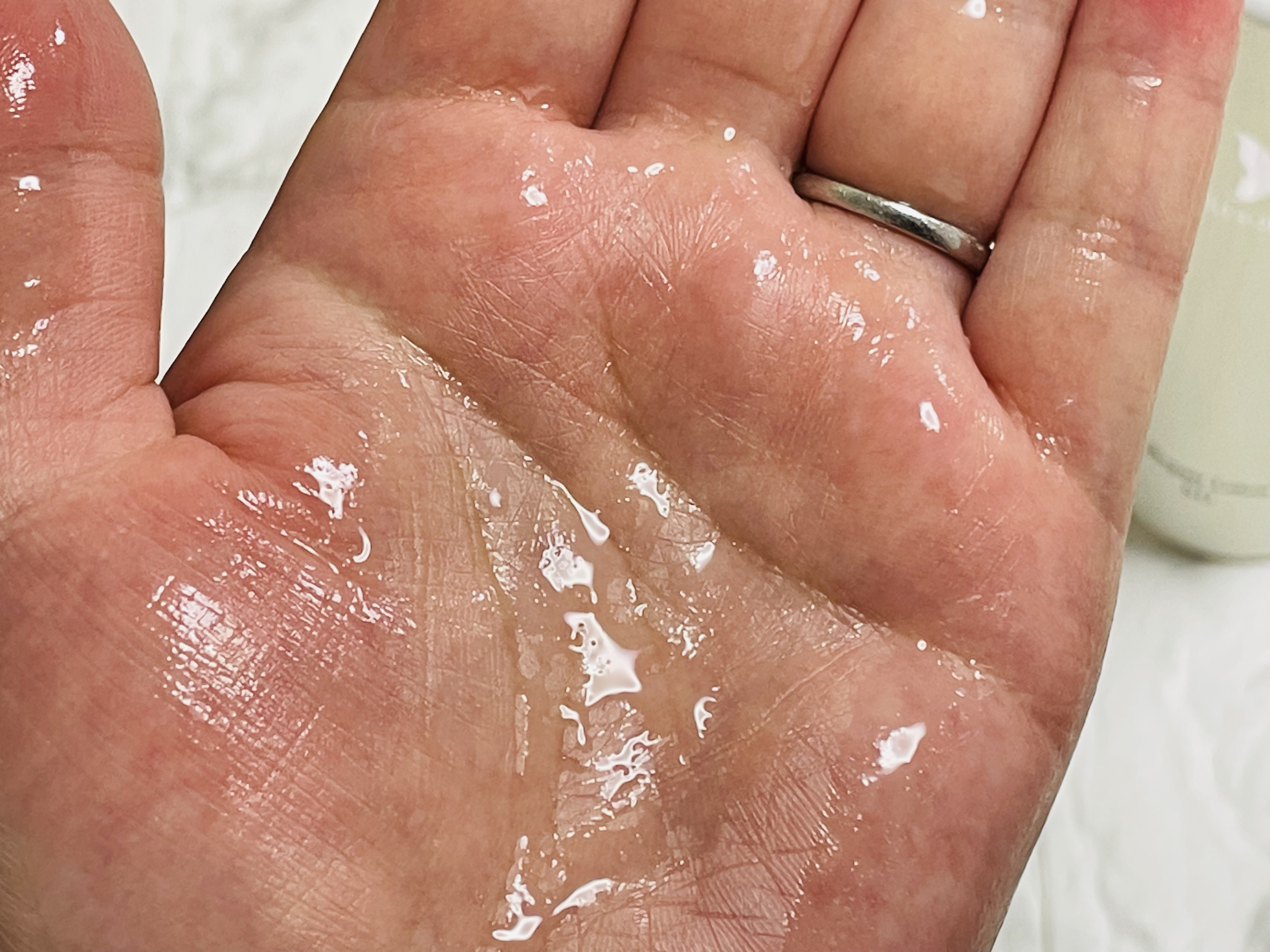 保湿成分がすばやく浸透*2し、使うたびツヤをたたえるなめらかな透明肌*1へ導きます。 このウィスクが二層を細かく混ぜ、フレッシュなマイクロバブルを作ってくれるようです。 肌にスーッとなじむテクスチャー。オイル効果でしっとりした使い心地で、でもベタつきがなく使いやすい使用感です♡