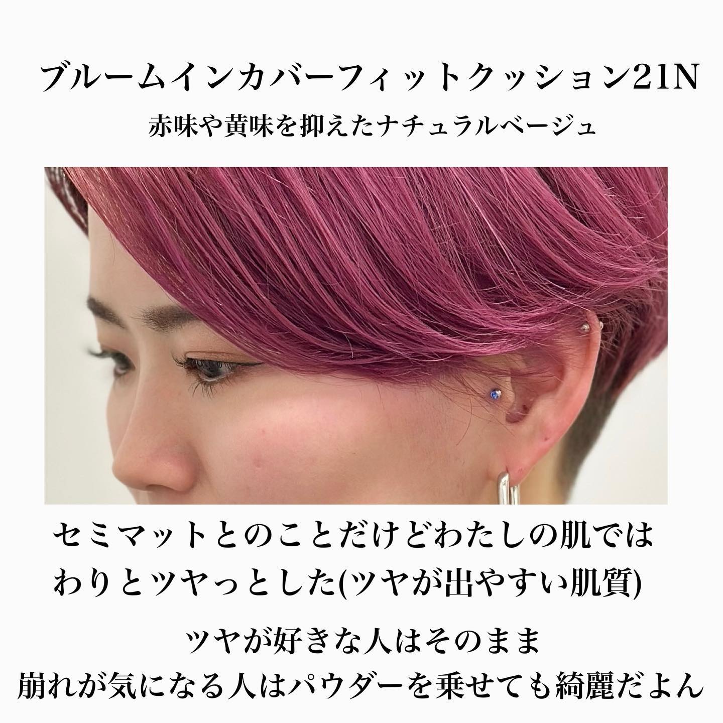 - <#19C ピュア> 水、シクロペンタシロキサン、酸化チタン、イソドデカン、トリメチルシロキシケイ酸、ジメチコン、プロパンジオール、エチルヘキサン酸セチル、ナイアシンアミド、1,2-ヘキサンジオール、PEG/PPG-18/18ジメチコン、PEG-10ジメチコン、酸化鉄、(アクリレーツ/メタクリル酸ポリトリメチルシロキシ)コポリマー、硫酸Mg、ポリグリセリル-3ポリジメチルシロキシエチルジメチコン、オクチルドデカノール、ジステアルジモニウムヘクトライト、合成フルオロフロゴパイト、水酸化Al、香料、ステアリン酸、アルミナ、トリエトキシカプリリルシラン、ポリヒドロキシステアリン酸、イソステアリン酸ポリグリセリル-4、アデノシン、エチレンジアミンジコハク酸3Na、トリイソステアリン酸イソプロピルチタン、ジエチルヘキサン酸ネオペンチルグリコール、BG、ヤマザクラ花エキス、ヒアルロン酸Na、ヒアルロン酸、アスコルビン酸 <#21N ナチュラル> 水、シクロペンタシロキサン、酸化チタン、イソドデカン、トリメチルシロキシケイ酸、ジメチコン、プロパンジオール、エチルヘキサン酸セチル、ナイアシンアミド、1,2-ヘキサンジオール、酸化鉄、PEG/PPG-18/18ジメチコン、PEG-10ジメチコン、(アクリレーツ/メタクリル酸ポリトリメチルシロキシ)コポリマー、オクチルドデカノール、硫酸Mg、ポリグリセリル-3ポリジメチルシロキシエチルジメチコン、ジステアルジモニウムヘクトライト、合成フルオロフロゴパイト、水酸化Al、香料、ステアリン酸、アルミナ、トリエトキシカプリリルシラン、イソステアリン酸ポリグリセリル-4、ポリヒドロキシステアリン酸、トリイソステアリン酸イソプロピルチタン、アデノシン、エチレンジアミンジコハク酸3Na、ジエチルヘキサン酸ネオペンチルグリコール、BG、ヤマザクラ花エキス、ヒアルロン酸Na、ヒアルロン酸、アスコルビン酸 <#23BE ベージュ> 水、シクロペンタシロキサン、酸化チタン、イソドデカン、トリメチルシロキシケイ酸、ジメチコン、プロパンジオール、エチルヘキサン酸セチル、ナイアシンアミド、酸化鉄、1,2-ヘキサンジオール、PEG/PPG-18/18ジメチコン、PEG-10ジメチコン、オクチルドデカノール、(アクリレーツ/メタクリル酸ポリトリメチルシロキシ)コポリマー、硫酸Mg、ポリグリセリル-3ポリジメチルシロキシエチルジメチコン、ジステアルジモニウムヘクトライト、合成フルオロフロゴパイト、水酸化Al、香料、ステアリン酸、アルミナ、トリエトキシカプリリルシラン、イソステアリン酸ポリグリセリル-4、ポリヒドロキシステアリン酸、トリイソステアリン酸イソプロピルチタン、アデノシン、エチレンジアミンジコハク酸3Na、ジエチルヘキサン酸ネオペンチルグリコール、BG、ヤマザクラ花エキス、ヒアルロン酸Na、ヒアルロン酸、アスコルビン酸