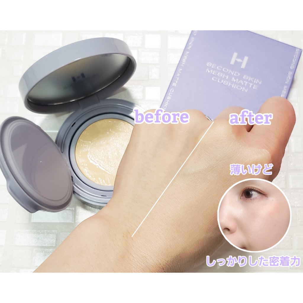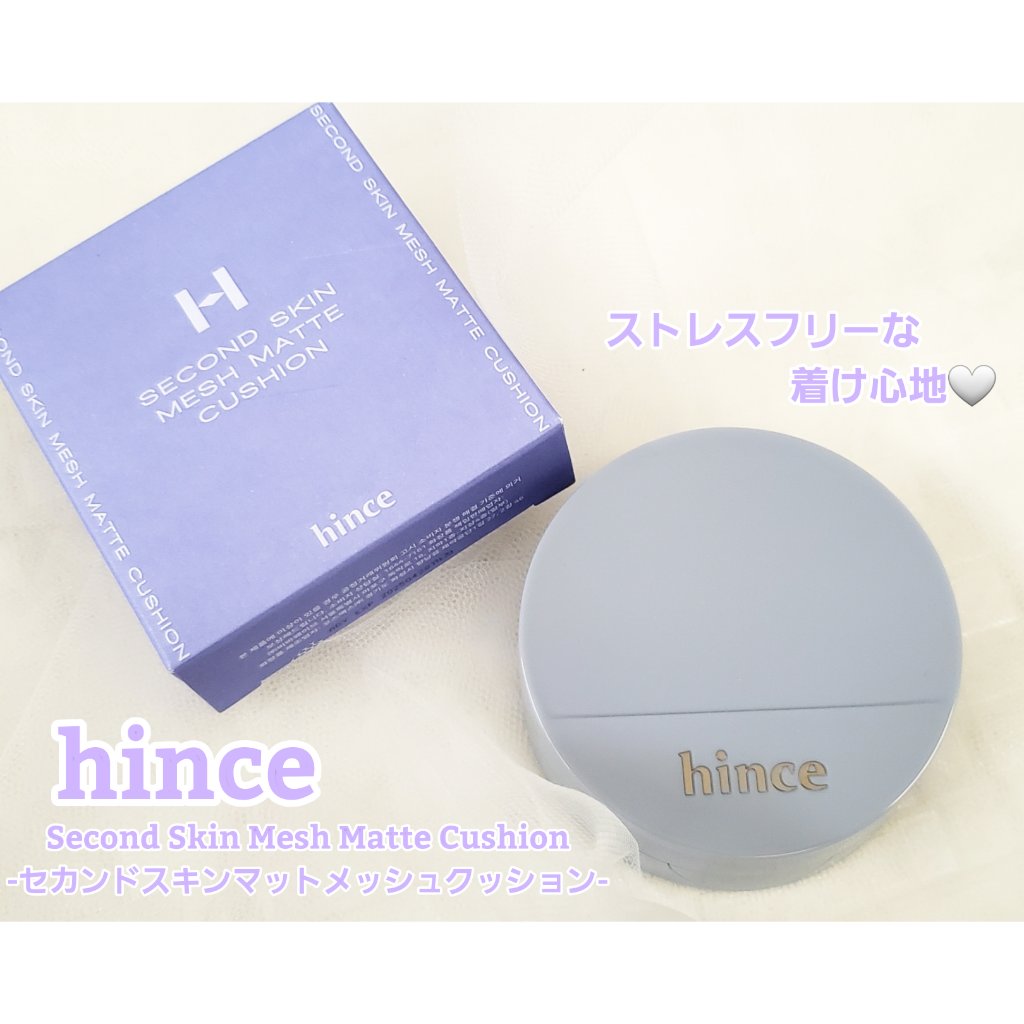 hinceセカンドスキンメッシュマットクッション 23マットに仕上がり軽いファンデ買ってみました❗マットなんだけどサラっと軽くて付け心地が良かったです‼素肌を綺麗に見せてくれて、薄いシミは隠れちゃうからなかなか優秀な印象です✨高カバーではない...