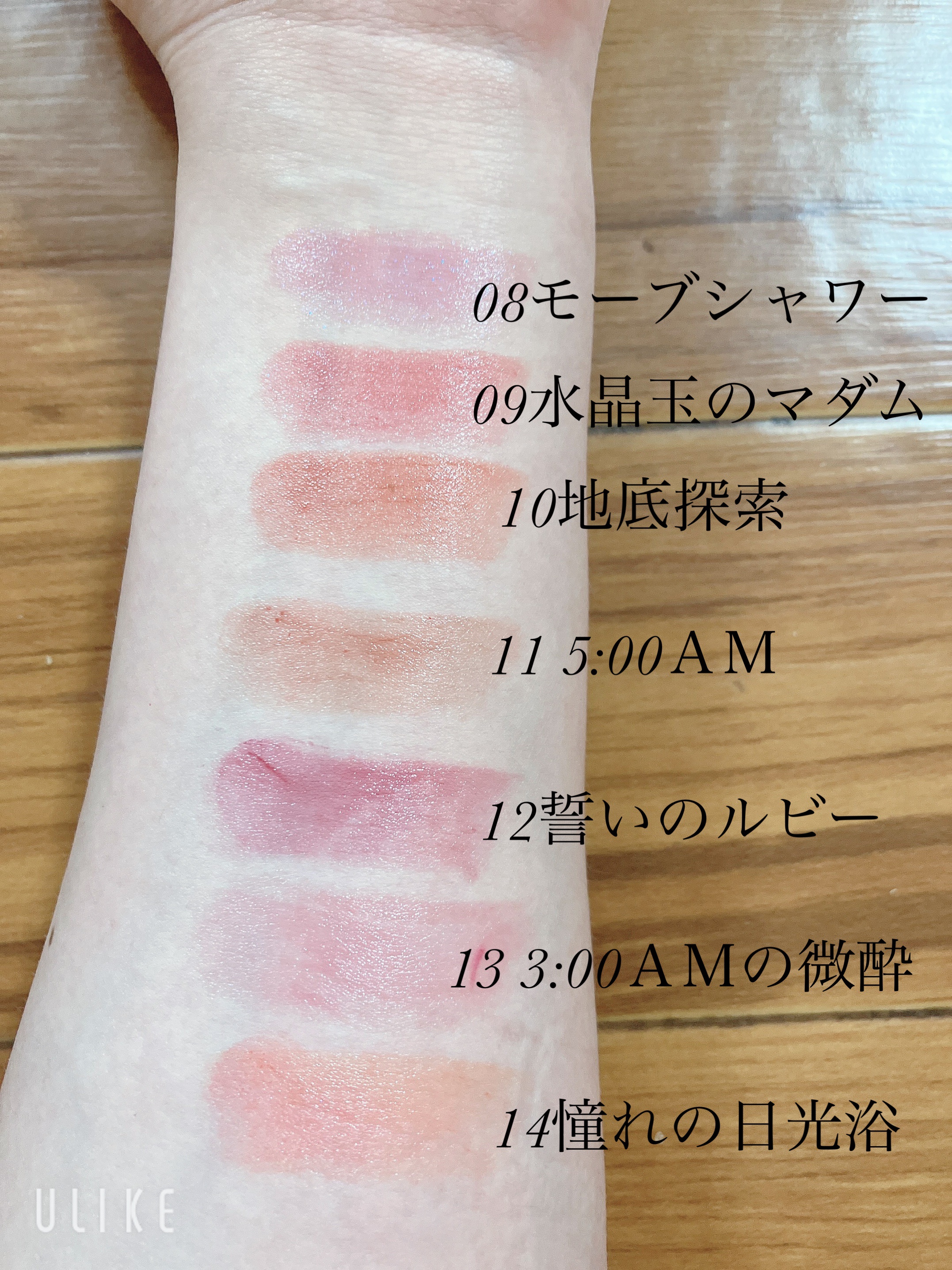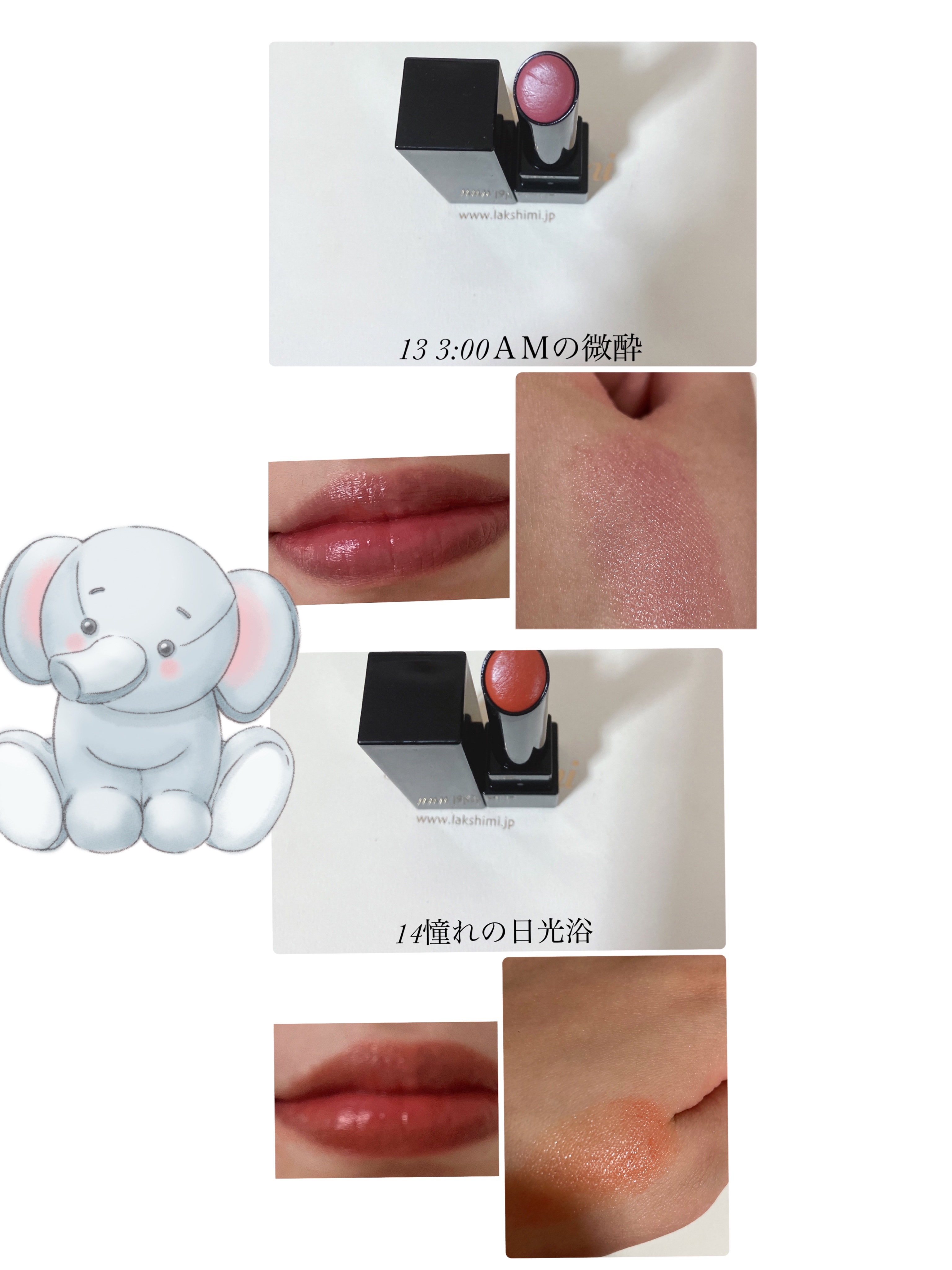 - <01 欲望の塊> テトライソステアリン酸ジペンタエリスリチル、トリ(カプリル酸/カプリン酸)グリセリル、オクチルドデカノール、ラウロイルグルタミン酸ジ(フィトステリル/オクチルドデシル)、ビスアルキル(C16-18)グリセリルウンデシルジメチコン、イソノナン酸イソトリデシル、水添ポリイソブテン、ラウロイルグルタミン酸ジ(オクチルドデシル/フィトステリル/ベヘニル)、パラフィン、合成ワックス、ダイマージリノール酸(フィトステリル/イソステアリル/セチル/ステアリル/ベヘニル)、マイクロクリスタリンワックス、水添マイクロクリスタリンワックス、ヒドロキシステアリン酸エチルヘキシル、トコフェロール、ホホバ種子油、オリーブ果実油、アーモンド油、(エチレン/プロピレン)コポリマー、ポリエチレン、ジメチコン、(+/-)(チタン/酸化チタン)焼結物、マイカ、ラウロイルアスパラギン酸Na、ラウロイルリシン、塩化亜鉛、酸化チタン、酸化鉄、水酸化Al、硫酸Ba、トリイソステアリン酸イソプロピルチタン、酸化スズ、ホウケイ酸(Ca/Al)、合成フルオロフロゴパイト、黄4、黄5、赤104(1)、赤201、赤202 <02 ピンクバナナ> テトライソステアリン酸ジペンタエリスリチル、トリ(カプリル酸/カプリン酸)グリセリル、オクチルドデカノール、ラウロイルグルタミン酸ジ(フィトステリル/オクチルドデシル)、ビスアルキル(C16-18)グリセリルウンデシルジメチコン、イソノナン酸イソトリデシル、水添ポリイソブテン、ラウロイルグルタミン酸ジ(オクチルドデシル/フィトステリル/ベヘニル)、パラフィン、合成ワックス、ダイマージリノール酸(フィトステリル/イソステアリル/セチル/ステアリル/ベヘニル)、マイクロクリスタリンワックス、水添マイクロクリスタリンワックス、ヒドロキシステアリン酸エチルヘキシル、トコフェロール、ホホバ種子油、オリーブ果実油、アーモンド油、(エチレン/プロピレン)コポリマー、ポリエチレン、ジメチコン、(+/-)(チタン/酸化チタン)焼結物、マイカ、ラウロイルアスパラギン酸Na、ラウロイルリシン、塩化亜鉛、酸化チタン、酸化鉄、水酸化Al、硫酸Ba、トリイソステアリン酸イソプロピルチタン、酸化スズ、ホウケイ酸(Ca/Al)、合成フルオロフロゴパイト、黄4、黄5、赤104(1)、赤201、赤202 <03 陽炎> テトライソステアリン酸ジペンタエリスリチル、トリ(カプリル酸/カプリン酸)グリセリル、オクチルドデカノール、ラウロイルグルタミン酸ジ(フィトステリル/オクチルドデシル)、ビスアルキル(C16-18)グリセリルウンデシルジメチコン、イソノナン酸イソトリデシル、水添ポリイソブテン、ラウロイルグルタミン酸ジ(オクチルドデシル/フィトステリル/ベヘニル)、パラフィン、合成ワックス、ダイマージリノール酸(フィトステリル/イソステアリル/セチル/ステアリル/ベヘニル)、マイクロクリスタリンワックス、水添マイクロクリスタリンワックス、ヒドロキシステアリン酸エチルヘキシル、トコフェロール、ホホバ種子油、オリーブ果実油、アーモンド油、(エチレン/プロピレン)コポリマー、ポリエチレン、ジメチコン、(+/-)(チタン/酸化チタン)焼結物、マイカ、ラウロイルアスパラギン酸Na、ラウロイルリシン、塩化亜鉛、酸化チタン、酸化鉄、水酸化Al、硫酸Ba、トリイソステアリン酸イソプロピルチタン、酸化スズ、ホウケイ酸(Ca/Al)、合成フルオロフロゴパイト、黄4、黄5、赤104(1)、赤201、赤202 <04 パンプキンワイン> テトライソステアリン酸ジペンタエリスリチル、トリ(カプリル酸/カプリン酸)グリセリル、オクチルドデカノール、ラウロイルグルタミン酸ジ(フィトステリル/オクチルドデシル)、ビスアルキル(C16-18)グリセリルウンデシルジメチコン、イソノナン酸イソトリデシル、水添ポリイソブテン、ラウロイルグルタミン酸ジ(オクチルドデシル/フィトステリル/ベヘニル)、パラフィン、合成ワックス、ダイマージリノール酸(フィトステリル/イソステアリル/セチル/ステアリル/ベヘニル)、マイクロクリスタリンワックス、水添マイクロクリスタリンワックス、ヒドロキシステアリン酸エチルヘキシル、トコフェロール、ホホバ種子油、オリーブ果実油、アーモンド油、(エチレン/プロピレン)コポリマー、ポリエチレン、ジメチコン、(+/-)(チタン/酸化チタン)焼結物、マイカ、ラウロイルアスパラギン酸Na、ラウロイルリシン、塩化亜鉛、酸化チタン、酸化鉄、水酸化Al、硫酸Ba、トリイソステアリン酸イソプロピルチタン、酸化スズ、ホウケイ酸(Ca/Al)、合成フルオロフロゴパイト、黄4、黄5、赤104(1)、赤201、赤202 <05 ダークフィグ> テトライソステアリン酸ジペンタエリスリチル、トリ(カプリル酸/カプリン酸)グリセリル、オクチルドデカノール、ラウロイルグルタミン酸ジ(フィトステリル/オクチルドデシル)、ビスアルキル(C16-18)グリセリルウンデシルジメチコン、イソノナン酸イソトリデシル、水添ポリイソブテン、ラウロイルグルタミン酸ジ(オクチルドデシル/フィトステリル/ベヘニル)、