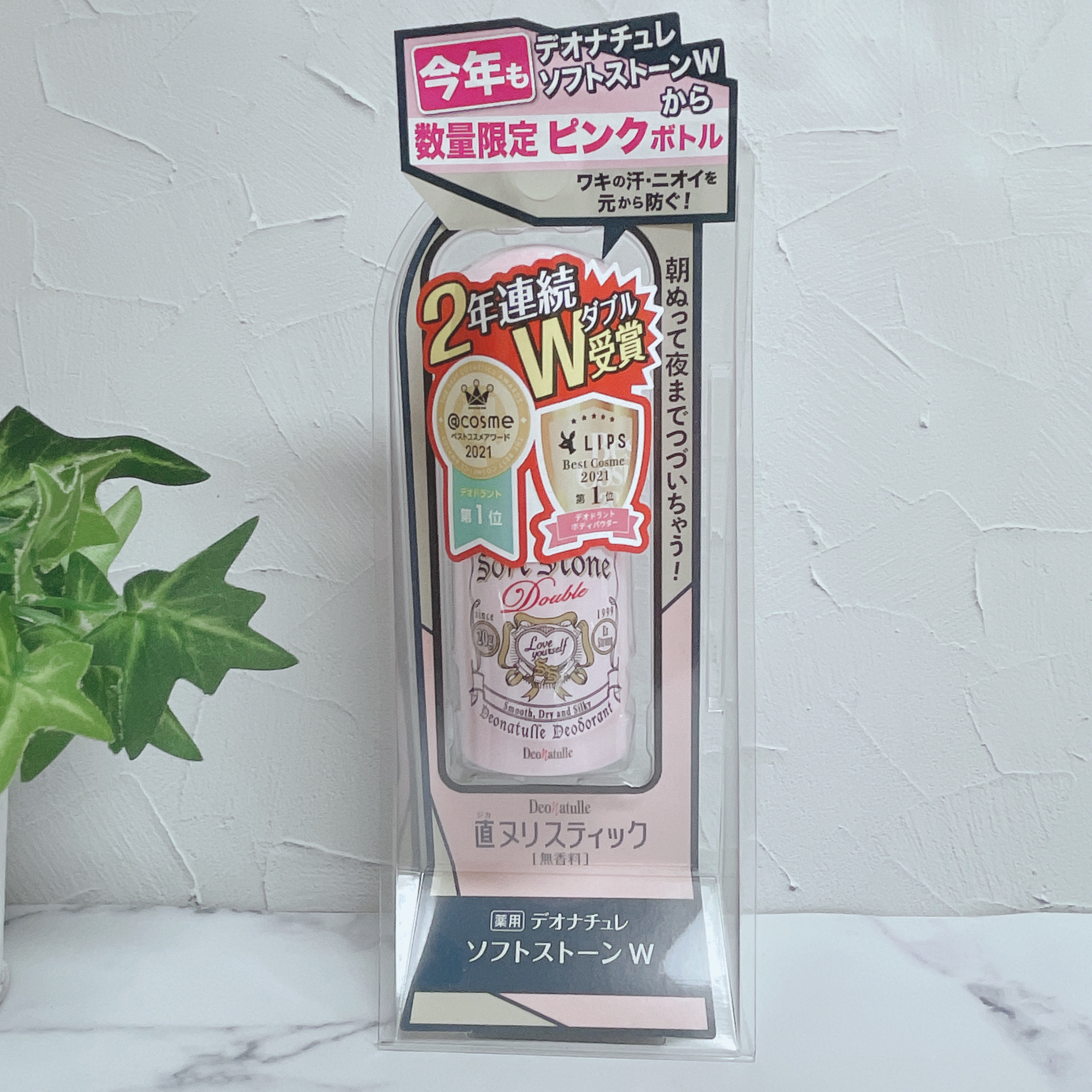 - \11年間ず~っと売上No.1*制汗デオドラント/ ワキの汗・ニオイを元から防ぐ 直ヌリスティック・無香料・アルコールフリー 天然アルム石に着目。有効成分「焼ミョウバン」を配合。 ◆◆ユーザーから選ばれる理由◆◆ ◆『天然アルム石のチカラ』に着目して、汗・ニオイを元から防ぐ! 「デオナチュレ ソフトストーンW」は、天然アルム石に着目。有効成分「焼ミョウバン」を配合し、汗・ニオイを元から防ぎます。 ◆ニオイの発生源・ワキに“直ヌリ”でしっかり密着し、朝ぬって夜まで続いちゃう! 忙しい朝でもサッとつけることができるスティックタイプで、夜まで長時間持続。 ◆すぐにサラサラ!ベタつき・白残りしにくい すぐに洋服を着ることができるので、時間のない朝にも嬉しい! ==注意== ●顔・粘膜を避け、除脱毛直後や肌に異常があるときは使用しないでください。●肌に異常が生じていないかよく注意してご使用ください。また、お肌に合わないとき、使用中に赤み、はれ、かゆみ、刺激、色抜け(白班等)や黒ずみ等の異常があらわれたときは、使用を中止し、皮フ科専門医などにご相談ください。●使用後はキャップをしっかり閉め、直射日光や高温多湿を避けて保管してください。●乳幼児の手の届かないところに置いてください。●スティックを出し過ぎて折れないようご注意ください。●衣類などにつかないようご注意ください。●本製品は残り少なくなりますと、構造上容器の底に中身が若干残ります。そのため、実際には容器に表記されております容量以上を充填しております。 販売名:DN薬用スティックFe *インテージSRI+制汗剤市場 2013年5月~2024年4月 ソフトストーンW(販売名:デオナチュレソフトストーンEX(リニューアル前処方)・DN薬用スティックFe)累計販売金額