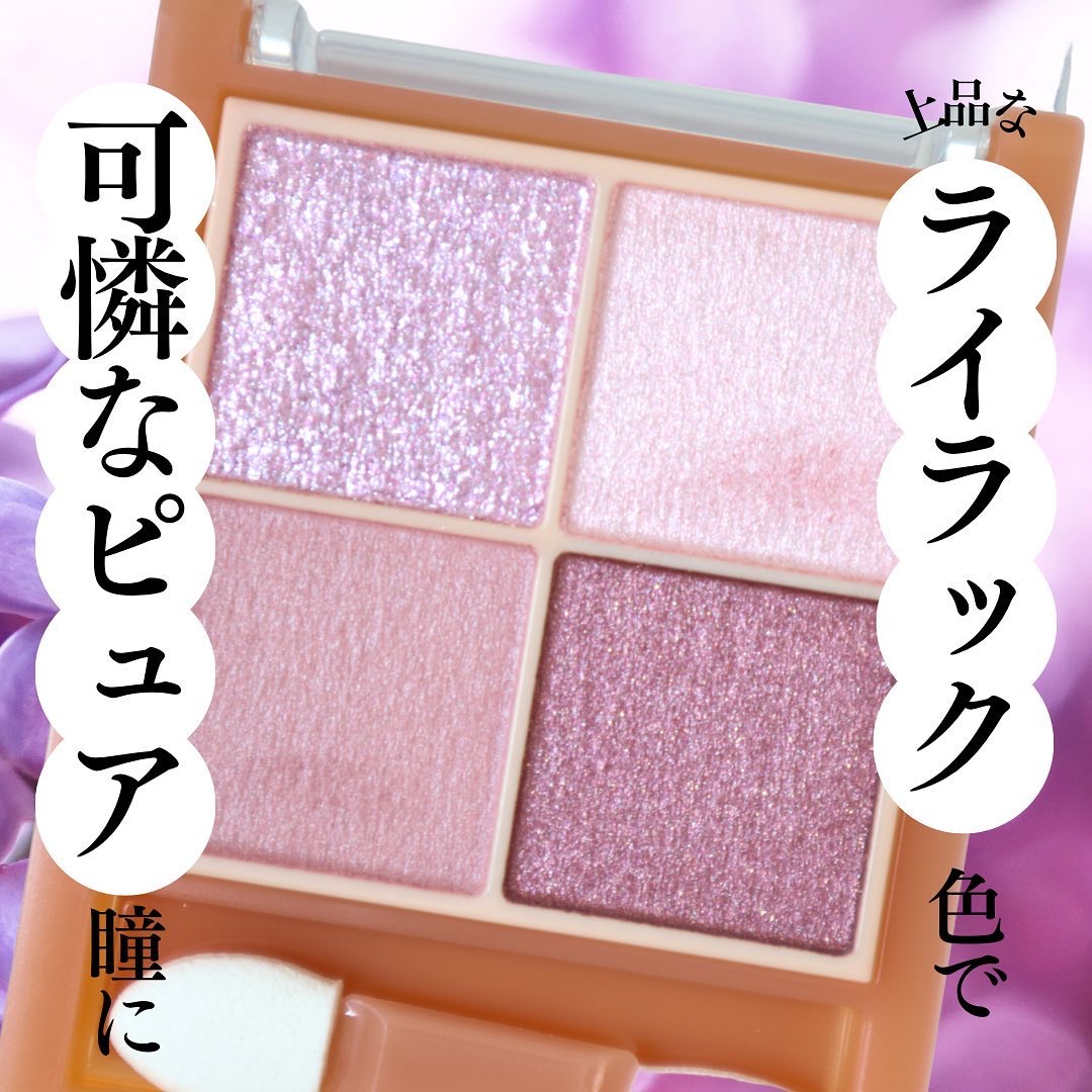 - ラメ・パール・マット3質感の4色アイシャドウ。 肌馴染みの良いベージュを基調としたカラー。ラメ・パール・マットの3質感を重ねて、自然にまぶたを強調し奥行のある大きな目元へ。 しっとり溶け込むような柔らかなパウダーなので、スルスル伸びてまぶたにピタッと密着。保湿成分(スクワラン・ホホバ種子油)配合。