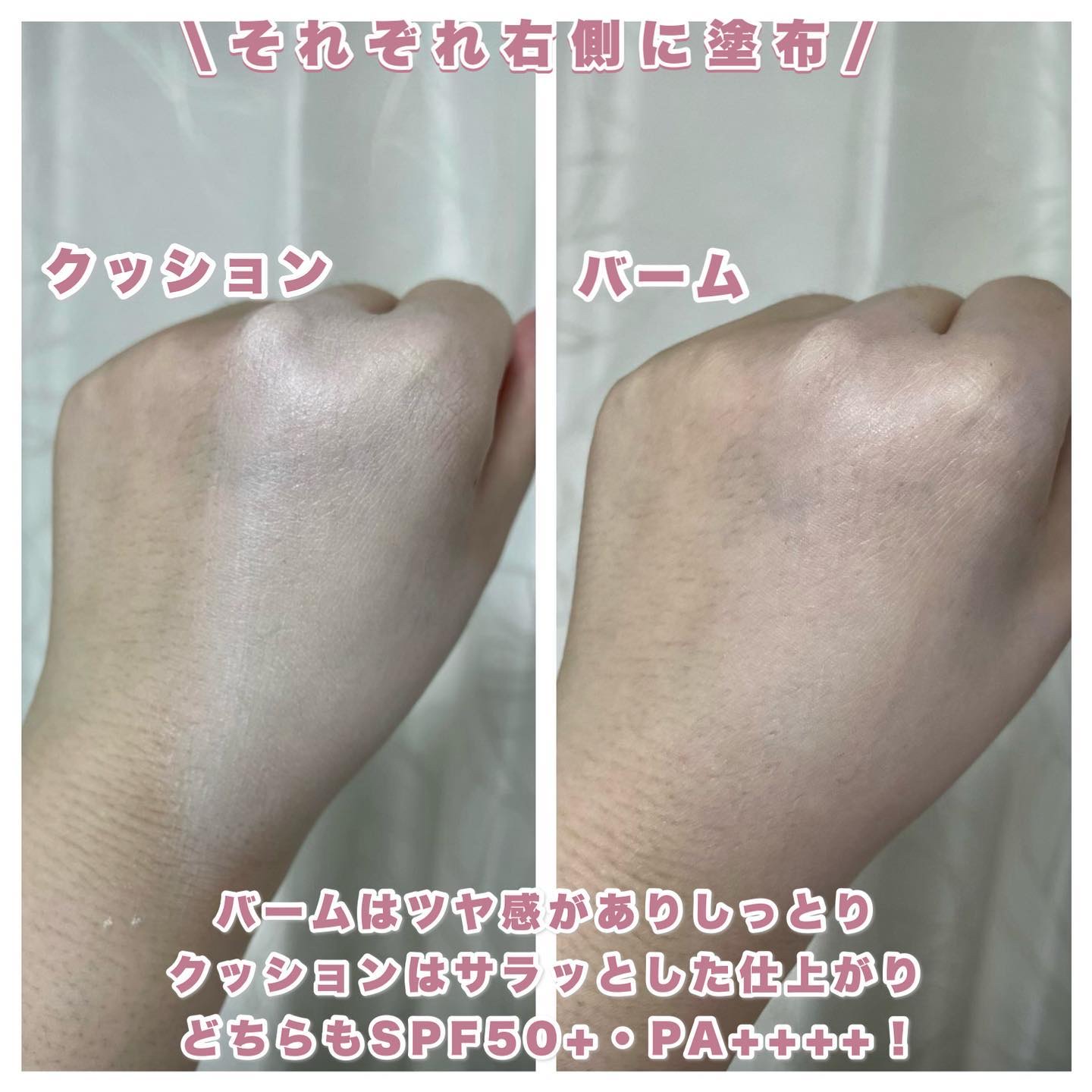 ミラーとしずく型のパフ付きで持ち運びにも便利。メイクの上から使えます😊 もち米由来の自然パウダーとカラーミングパウダーで紫外線で敏感になった肌の熱を落ち着かせてすべすべの仕上がりに。 ジュワッとみずみずしいテクスチャで肌に乗せるとややひんやり感あり。お肌もしっとり、明るく見えて小鼻の際の赤みもカバー✨