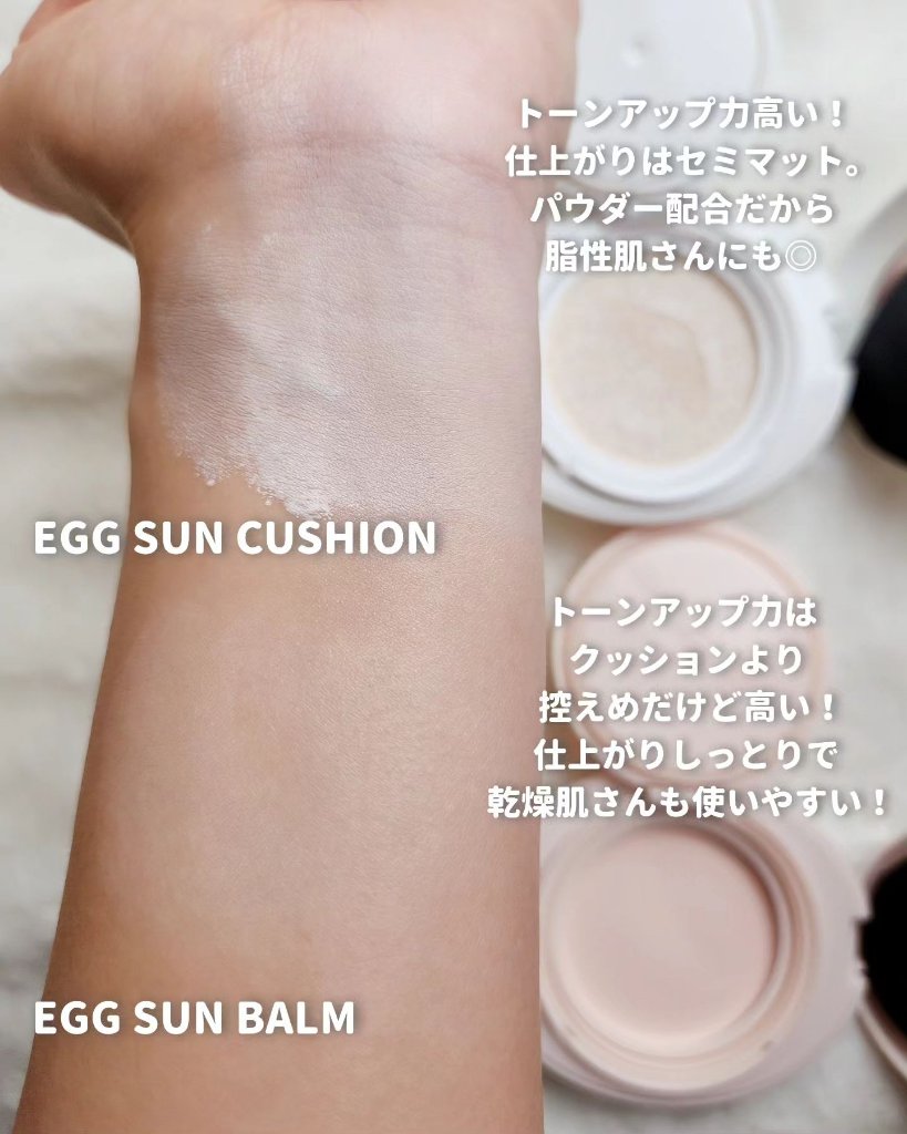 ミラーとしずく型のパフ付きで持ち運びにも便利。メイクの上から使えます😊 もち米由来の自然パウダーとカラーミングパウダーで紫外線で敏感になった肌の熱を落ち着かせてすべすべの仕上がりに。 ジュワッとみずみずしいテクスチャで肌に乗せるとややひんやり感あり。お肌もしっとり、明るく見えて小鼻の際の赤みもカバー✨