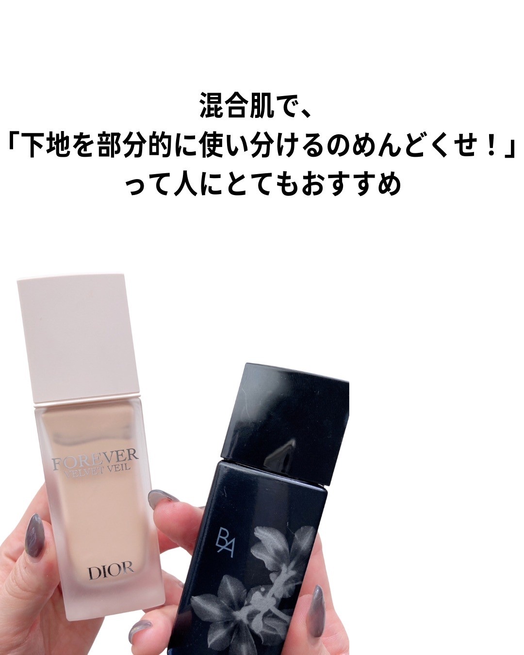 伸びが良くて塗ったらすぐにサラッとなってベタつかず、私は乾燥も気にならなかった下地。 皮脂が多いのでディオールスキン フォーエヴァー ベルベット ヴェールの方が皮脂を吸着してサラサラにしてくれるとBAさんに言われたのでこれにしました! 塗ってすぐからお肌がサラッとして時間が経ってもヨレにくかったです! 皮脂が多い私にはピッタリでした!