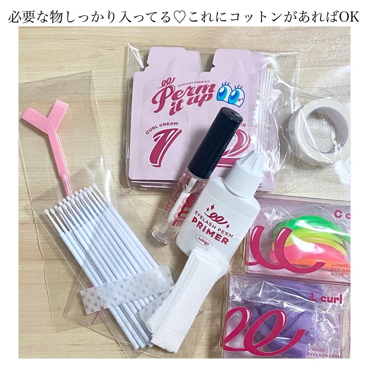 自宅でまつ毛パーマが出来るよ✨️ 必要な物が全て揃っていて、日本語の説明書付き。 CカールとLカールの選べるロッドにサイズも豊富🫶 翌日もしっかりカールしていて嬉しいです🙌
