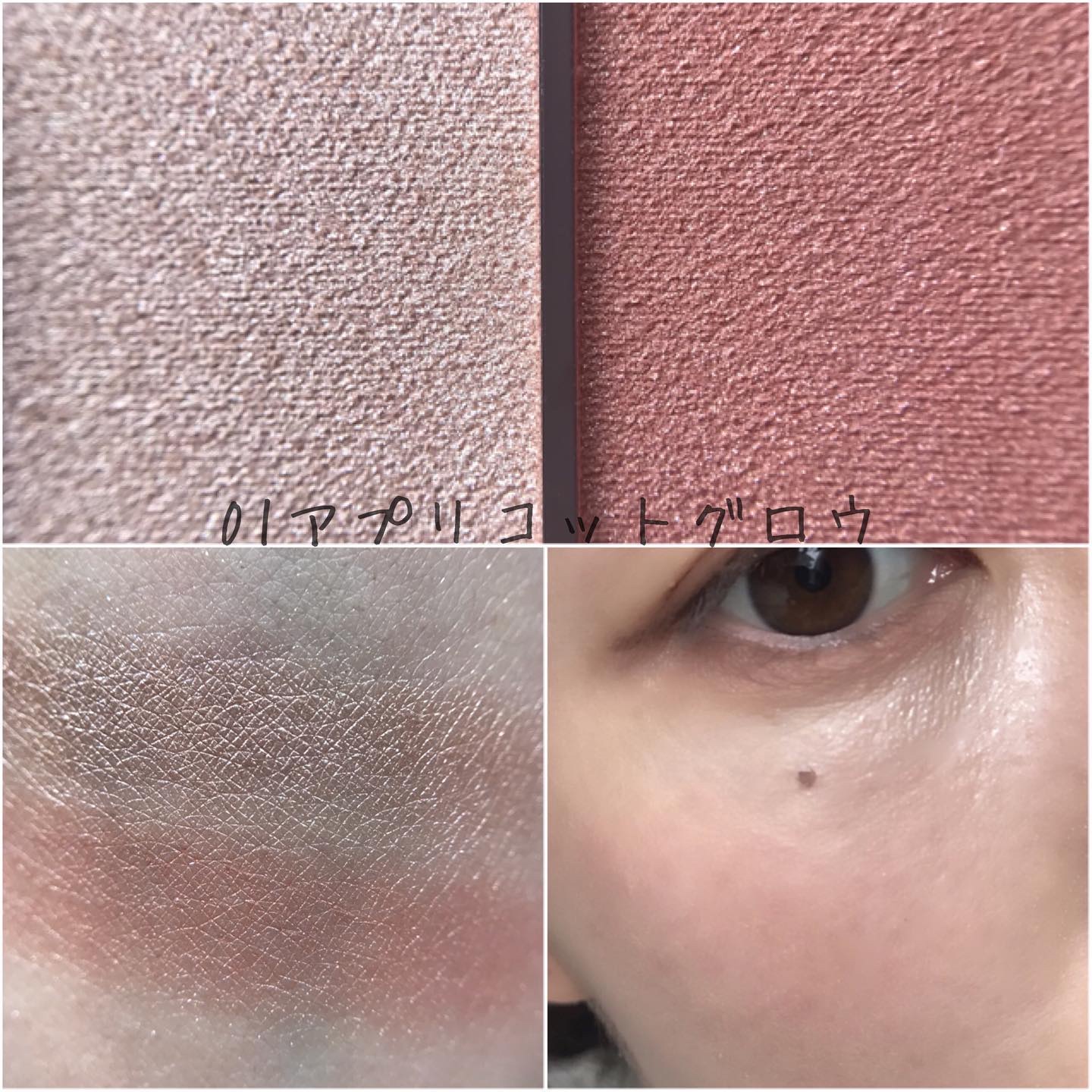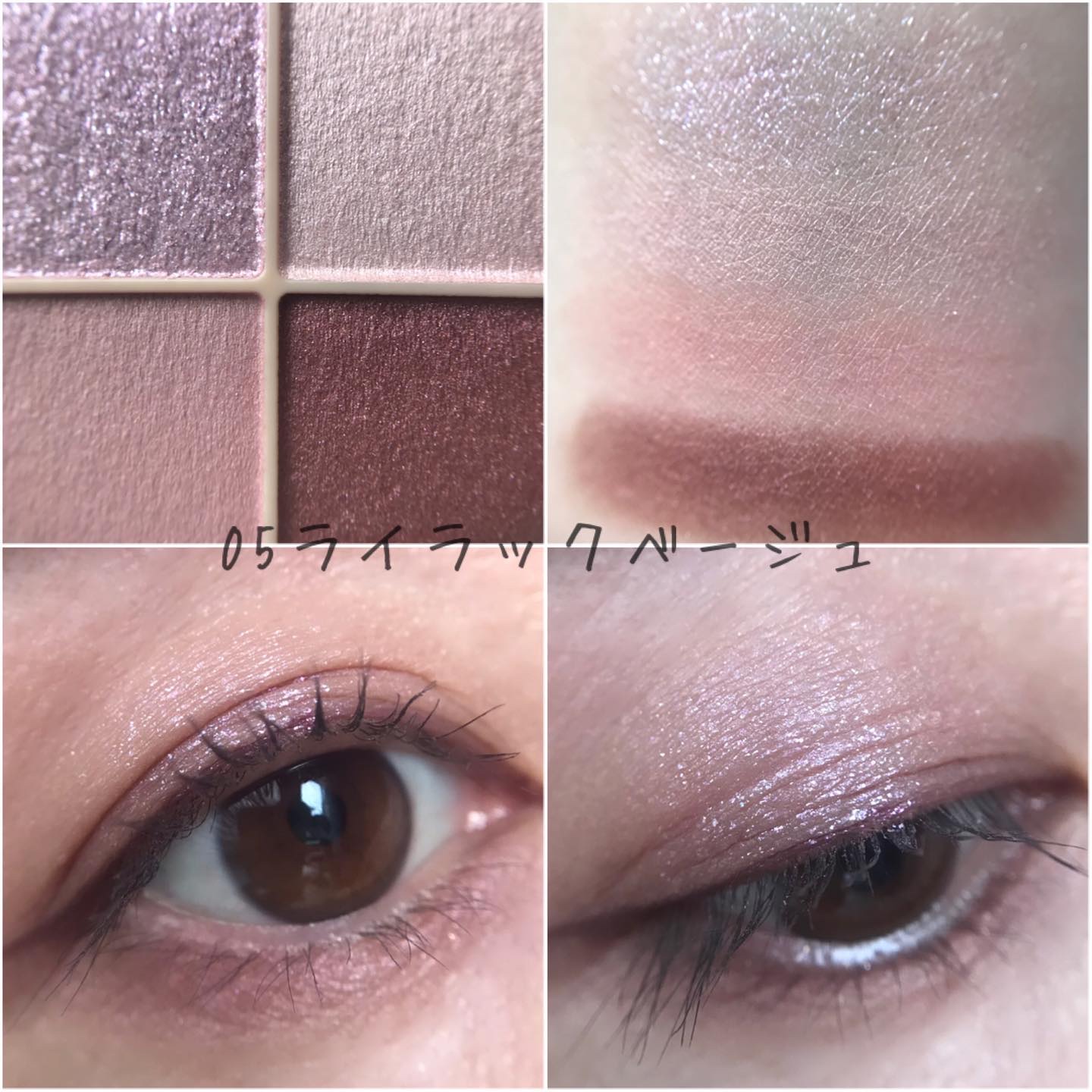 まずですね、ブルベよりかと思いきや、真ん中がピンク系ブラウンなんですよ! 真ん中の色が中和役になりますね! そして左上のグレイッシュカラー…既視感あるなーと思ったら大好きなモノクルールのベージュミッツァ! スウォッチで比べてみたらサンクの方がグレイッシュでしたね! 締め色もしっかりしてるしトータル的にバランスのいいパレット そしてやはり粉質が好きですね! ベースなしで使っても色もちも発色も抜群すぎてDiorさん流石ですってなりました👍 どちらかというとサマーよりのカラーの方が透明感がでます^ ^ ニュートラルな肌でサマー要素やブルベよりの肌の方はとってもハマるブラウンシャドウだと思います🥰 一つ前に投稿したルミナイザーと合わせても可愛くてお気に入りです♪