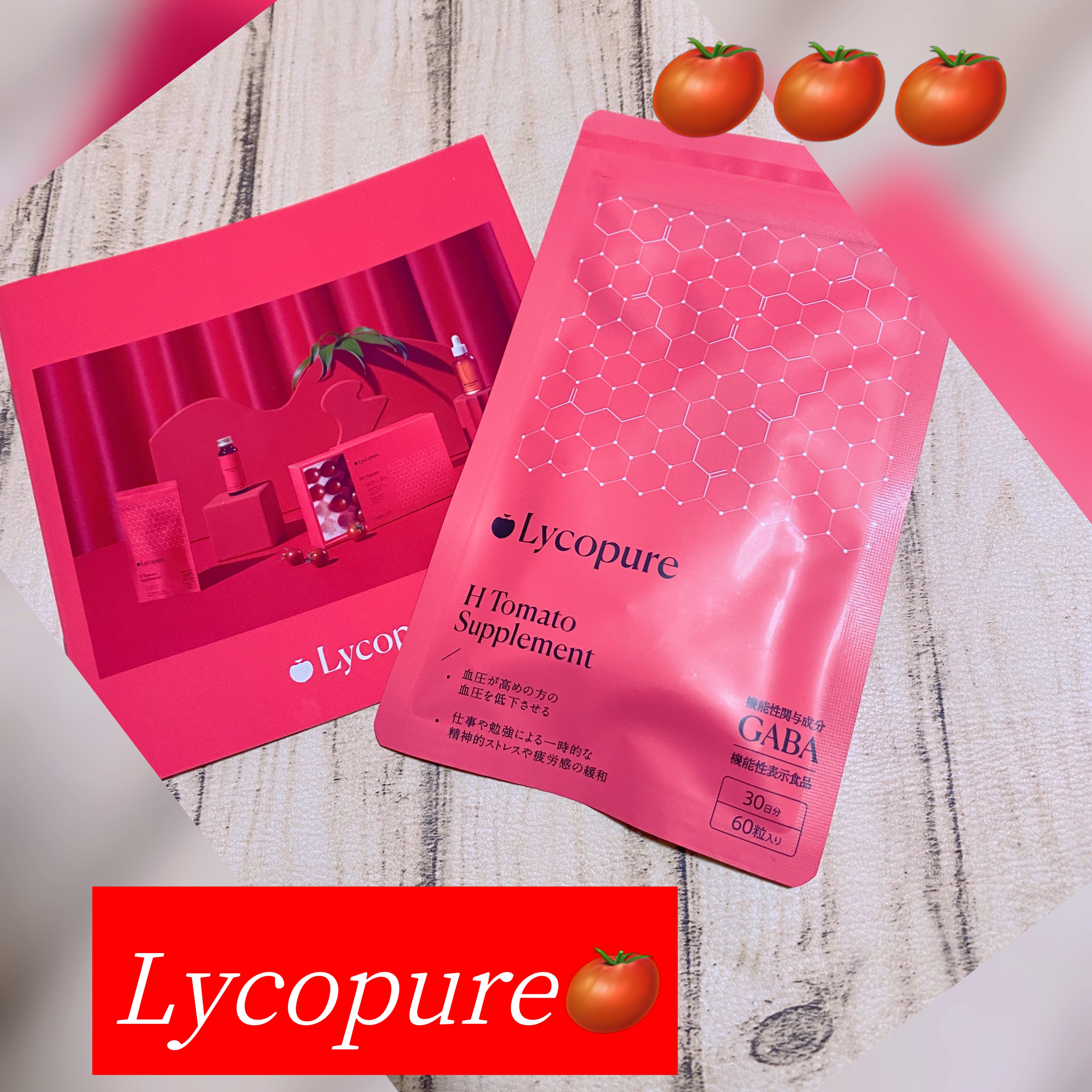 H Tomato Supplementはトマトを使ったサプリメントみたい。これが単なるトマトではなく、BH Tomatoという日本初の機能性表示がついたトマトという点がポイント。 保存料・香料無配合。さらに植物由来インキ(パッケージ)を使用しているなど、肌と地球への優しさへのこだわりをもったサプリメントになっているみたい。 何といっても機能性関与成分GABA配合し、精神的ストレス緩和・血圧低下をサポートしてくれることによりサプリメントで血圧、ストレスケアによる体メンテナンスに取り組めるみたい。