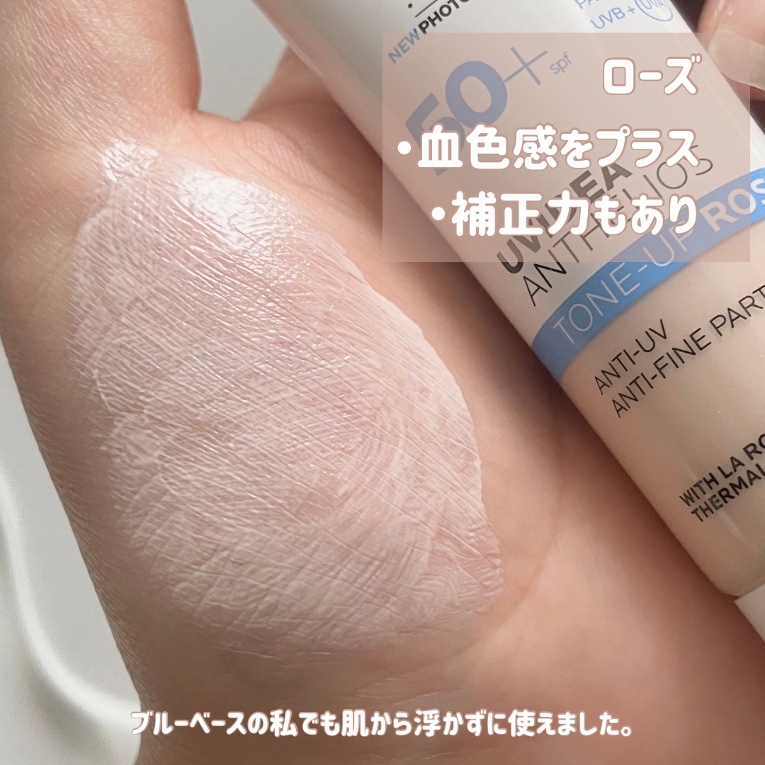 保湿力高めの下地が大好きなのでラロッシュポゼの下地はお気に入りでよく使います✨ かなりトーンアップします🤍自分は肌が黄ぐすみしやすいのでこれくらいトーンアップしてくれた方が時間がたった時にちょうどよくなります✨ 1番のお気に入りはローズです🌹肌から浮かない程よいトーンアップとほんのり血色感がよくなる所が大好きです🥰