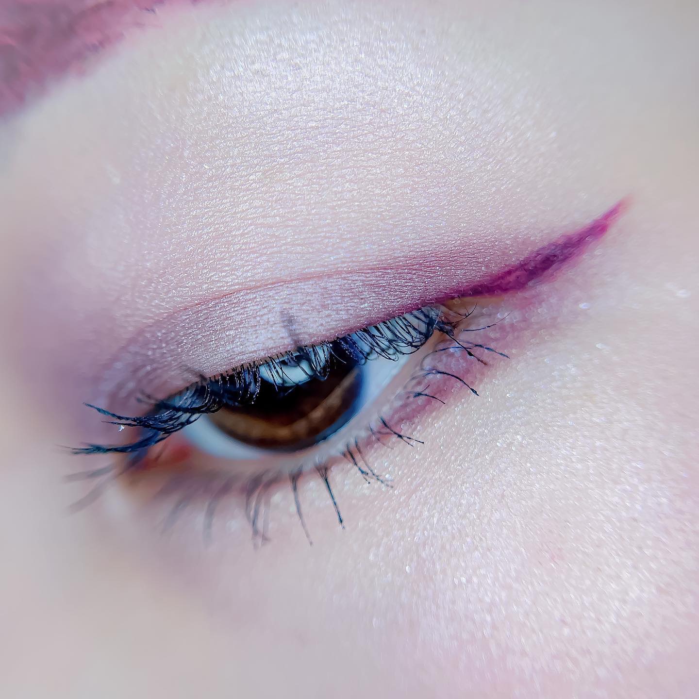 ピンクにグレージュも良いですね👌💗 今日は可愛らしい感じにしてみました💕 上下瞼黒目〜目頭側にラメを塗ってキラキラさせております🤩 目尻はマットのピンクを濃いめに重ねて💗 グレージュのアイライナーと相性◎