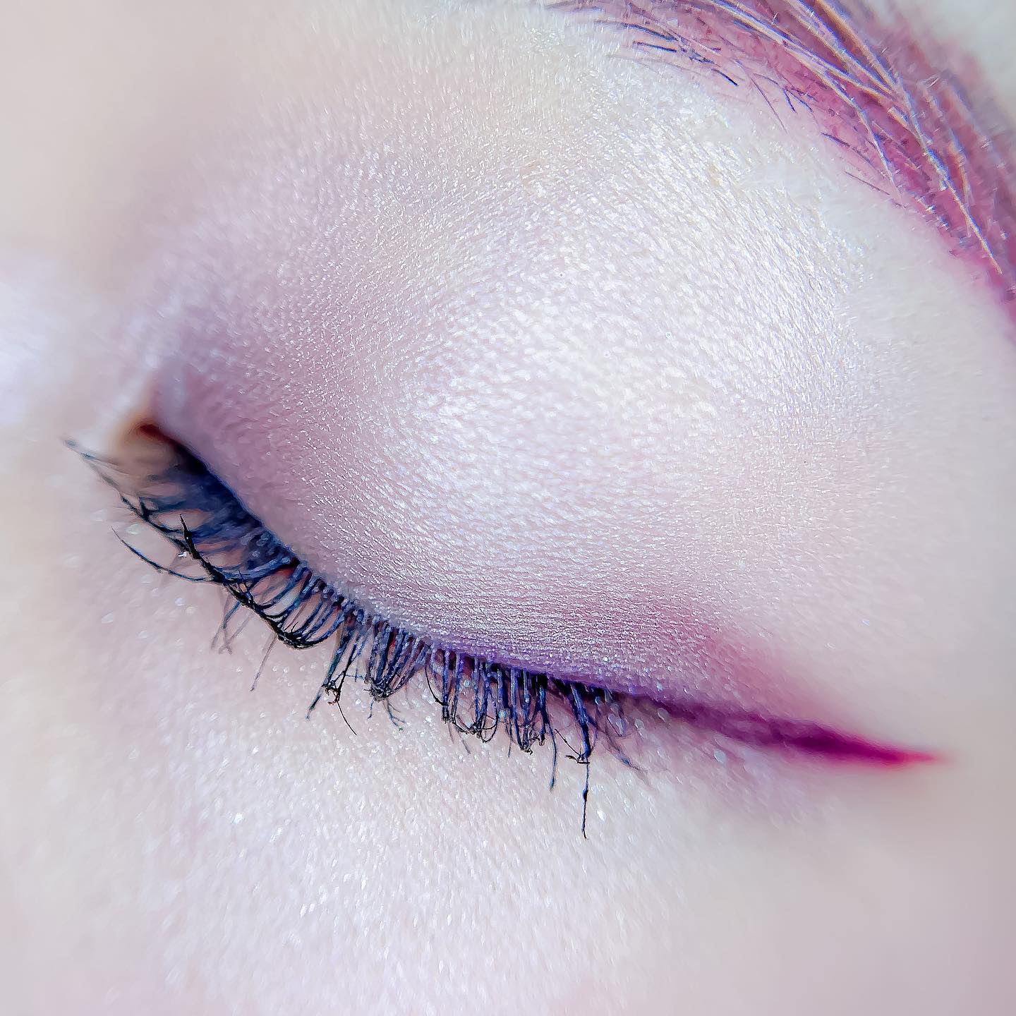 ベースに右上、目頭から黒目上に真ん中、黒目〜目尻に右下を、左上を目頭にくの字に塗ってもらいました✨ ピンクサクラよりもクールな感じで、目で見た色より私の肌では紫っぽく発色しました😍 上2つはラメはぎっしりでときめく💓 ブラウンメイクがとても苦手だけれどこれならブラウンメイク出来そう👌(かなり紫寄りですが) くすみ感は強いので苦手な方は厳しいかも…(特に真ん中) クールな印象になるので大人顔さん向けor大人顔になりたい方向けのイメージです✨