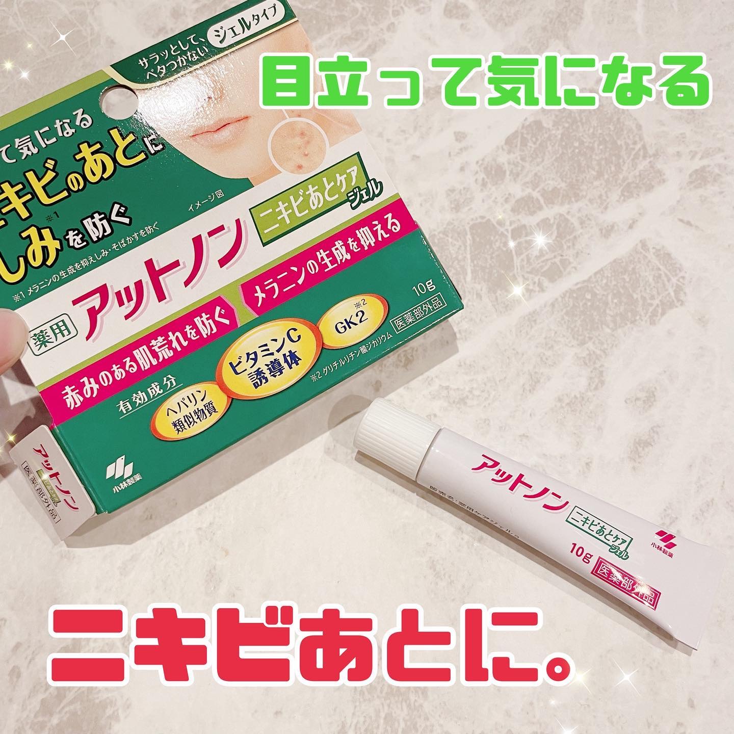 \ニキビのあとケア、コレ使って♡/ニキビのあとは、刺激などの炎症によりメラニンの生成が促されてしみになりやすいの🥲そうなる前にコレがオススメ!♡小林製薬アットノンニキビあとケアジェル(医薬部外品)スキンケアの最後ではなく洗顔後、スキンケア前に...