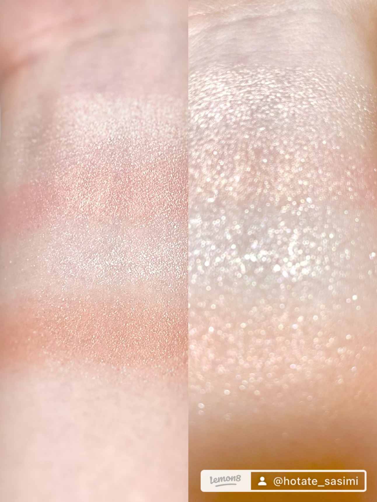 - 【数量限定発売】 きらめく水面のような輝きで目元の存在感を高めるオールきらめきパレットアイシャドウ ◆異なる輝きの組み合わせ A:ツヤと透明感小粒のパール質感 B:しっとりとした発色の繊細パール質感のクリーミータッチ C:存在感のある大粒ハイパーグリッター質感 D:3種の異なる色と輝きで揺らめくミックスグリッター質感 ◆全3種 ■パレット右側2色に採用「ハイパーグリッター処方」 ✓密着力が高い!:密着性の高いオイルを配合。パールが落ちにくい。 ✓見た目の輝度が高い!:油剤を多く、パールを高配合*することで、強い光沢感・グリッター質感を演出。 *自社従来のパール処方と比較して。