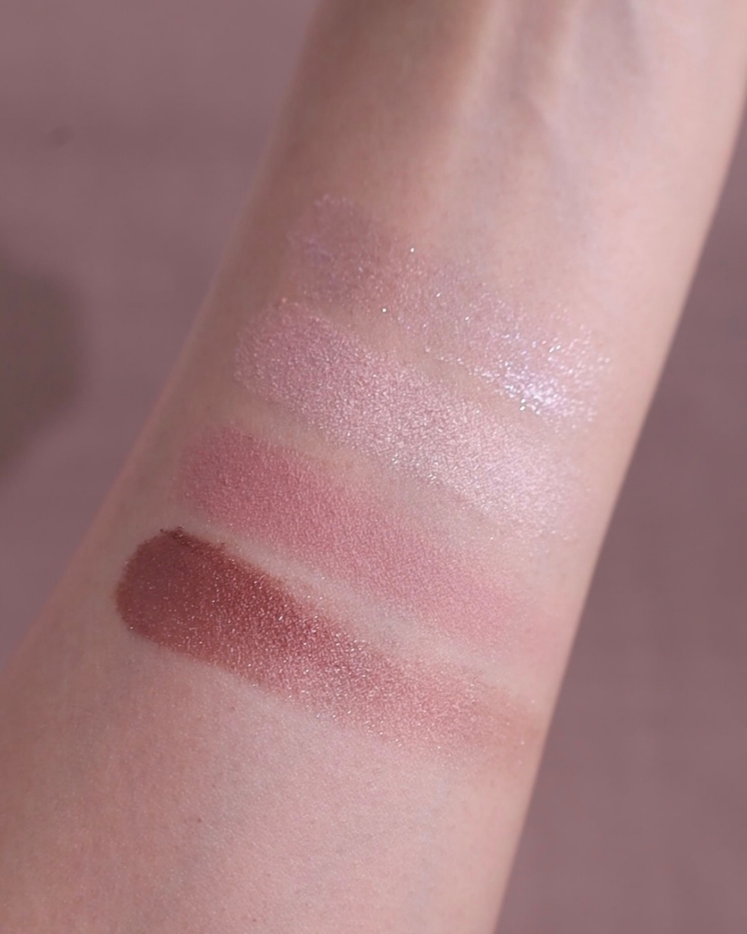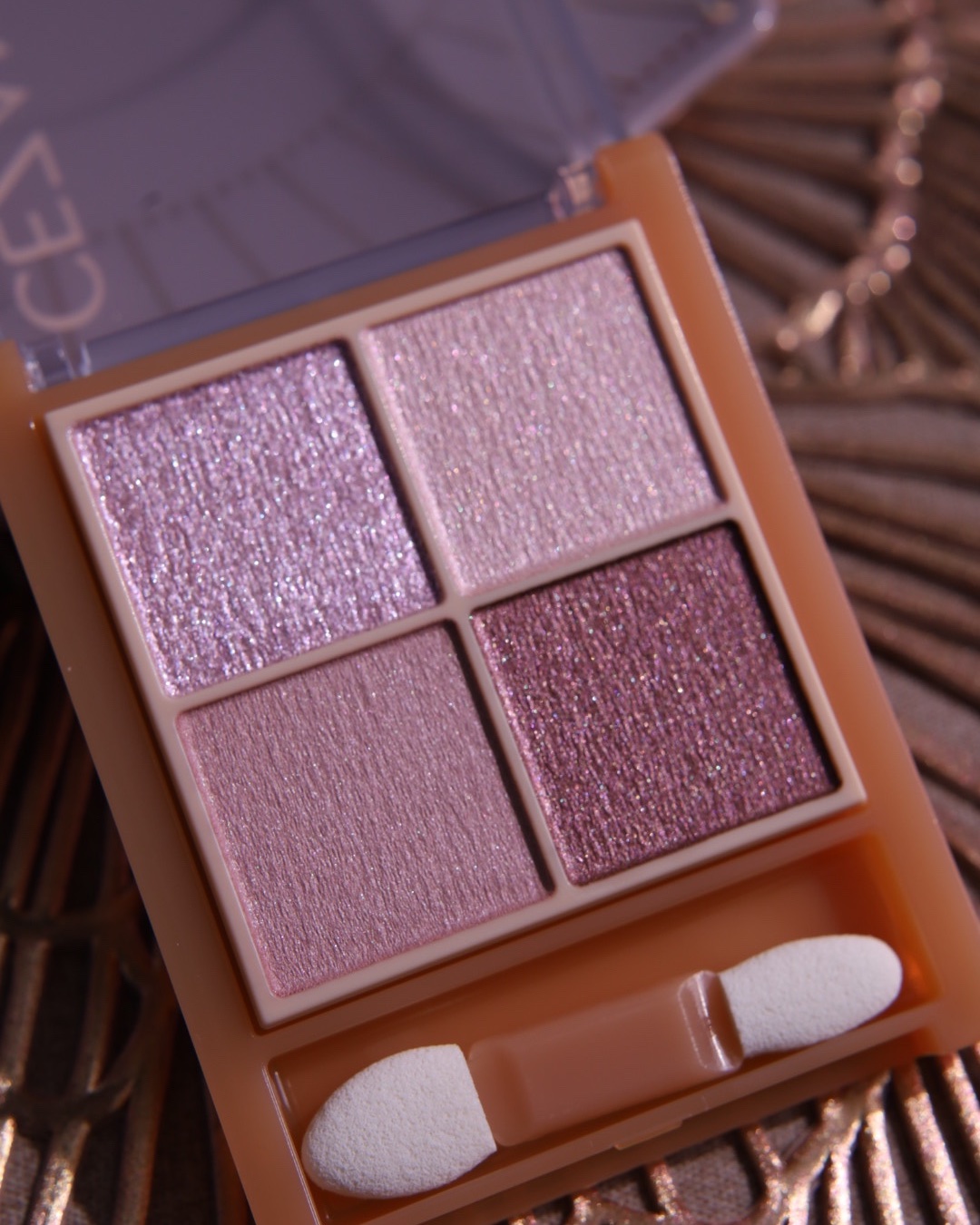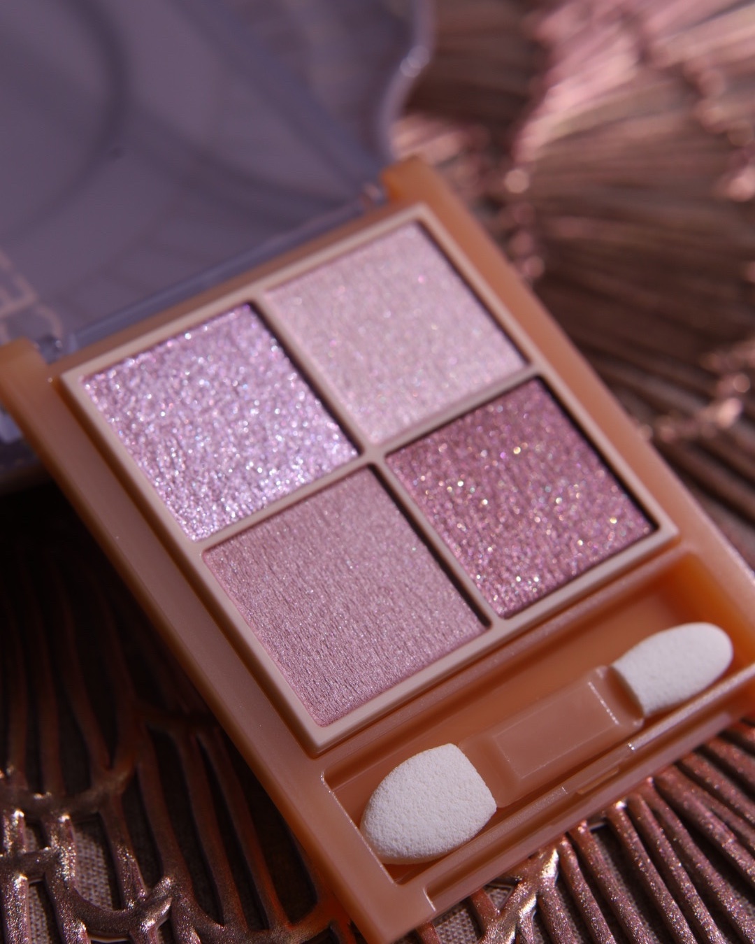 - ラメ・パール・マット3質感の4色アイシャドウ。 肌馴染みの良いベージュを基調としたカラー。ラメ・パール・マットの3質感を重ねて、自然にまぶたを強調し奥行のある大きな目元へ。 しっとり溶け込むような柔らかなパウダーなので、スルスル伸びてまぶたにピタッと密着。保湿成分(スクワラン・ホホバ種子油)配合。