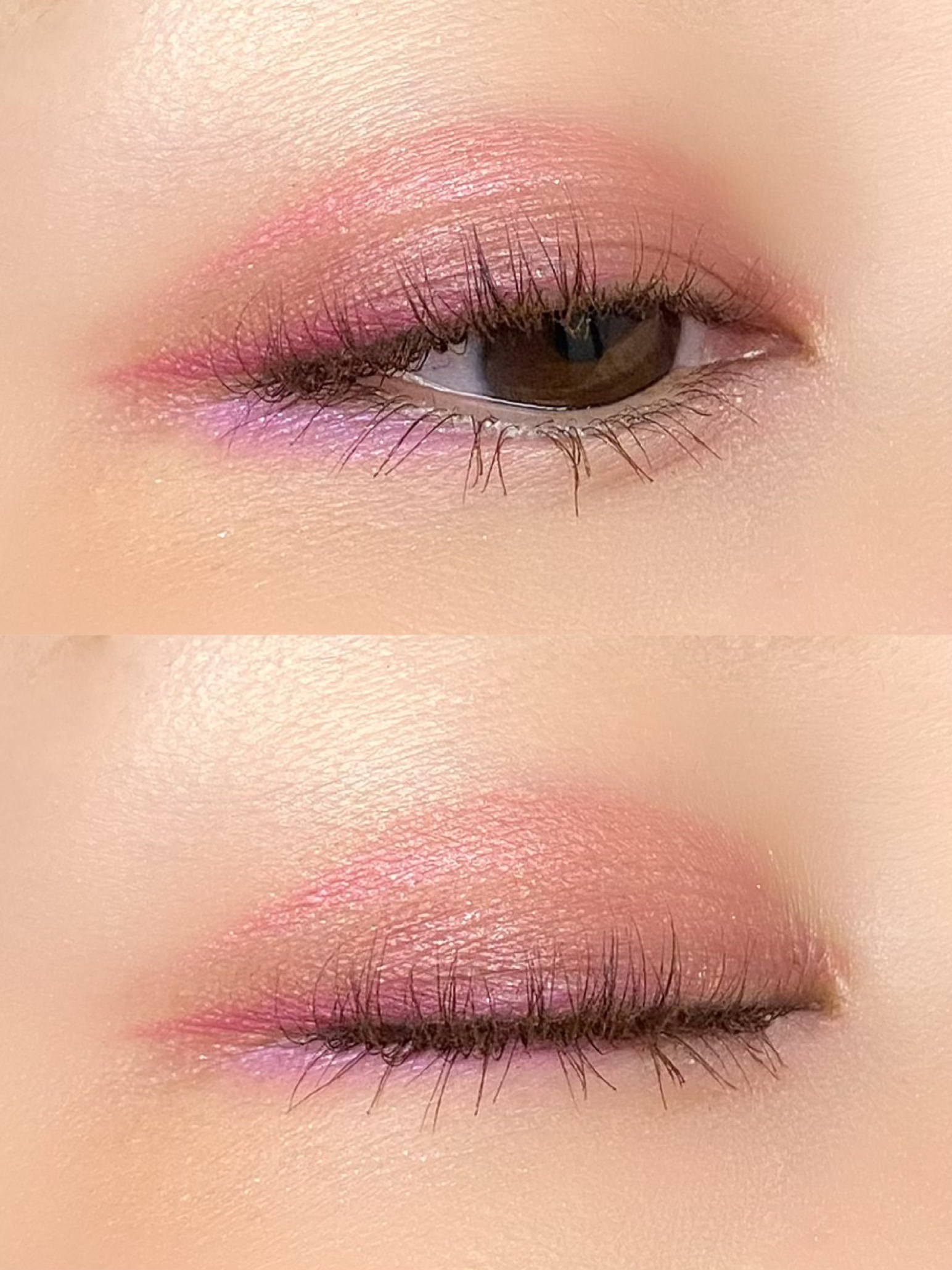 シンプルに2色だけ使用、アイライナーなし どっちも可愛いし単品使いしてもいいと思う✨そして他のラズルカラーと合わせても可愛いと思う😍 また他の組み合わせも試してみてアイメイク記録載せたいです💓