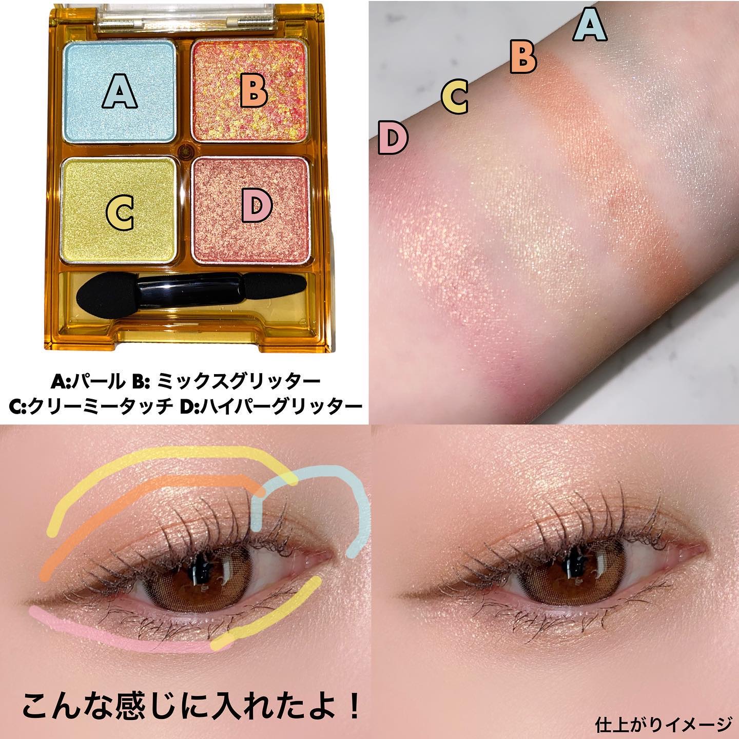 - 【数量限定発売】 きらめく水面のような輝きで目元の存在感を高めるオールきらめきパレットアイシャドウ ◆異なる輝きの組み合わせ A:ツヤと透明感小粒のパール質感 B:しっとりとした発色の繊細パール質感のクリーミータッチ C:存在感のある大粒ハイパーグリッター質感 D:3種の異なる色と輝きで揺らめくミックスグリッター質感 ◆全3種 ■パレット右側2色に採用「ハイパーグリッター処方」 ✓密着力が高い!:密着性の高いオイルを配合。パールが落ちにくい。 ✓見た目の輝度が高い!:油剤を多く、パールを高配合*することで、強い光沢感・グリッター質感を演出。 *自社従来のパール処方と比較して。