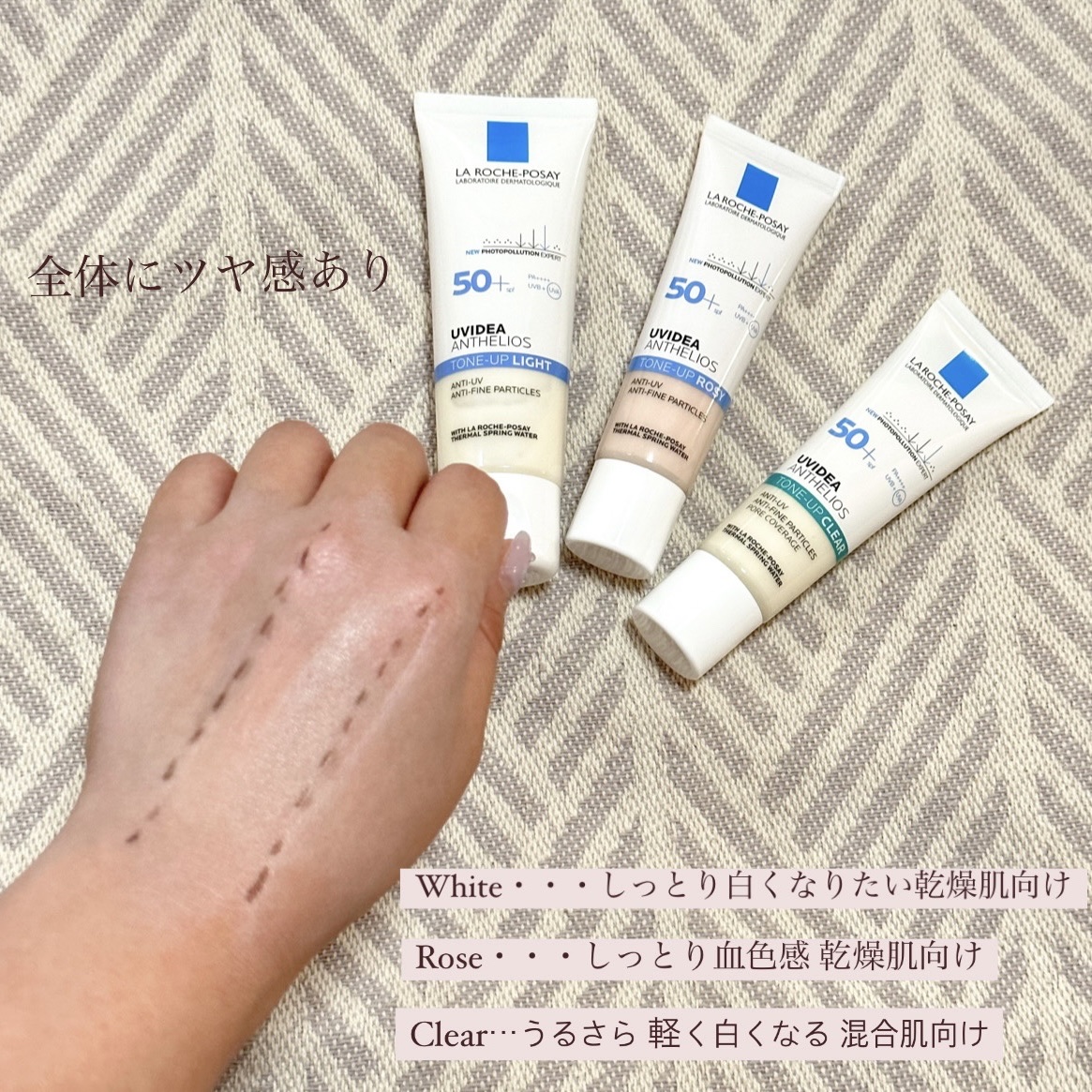 保湿力高めの下地が大好きなのでラロッシュポゼの下地はお気に入りでよく使います✨ かなりトーンアップします🤍自分は肌が黄ぐすみしやすいのでこれくらいトーンアップしてくれた方が時間がたった時にちょうどよくなります✨ 1番のお気に入りはローズです🌹肌から浮かない程よいトーンアップとほんのり血色感がよくなる所が大好きです🥰