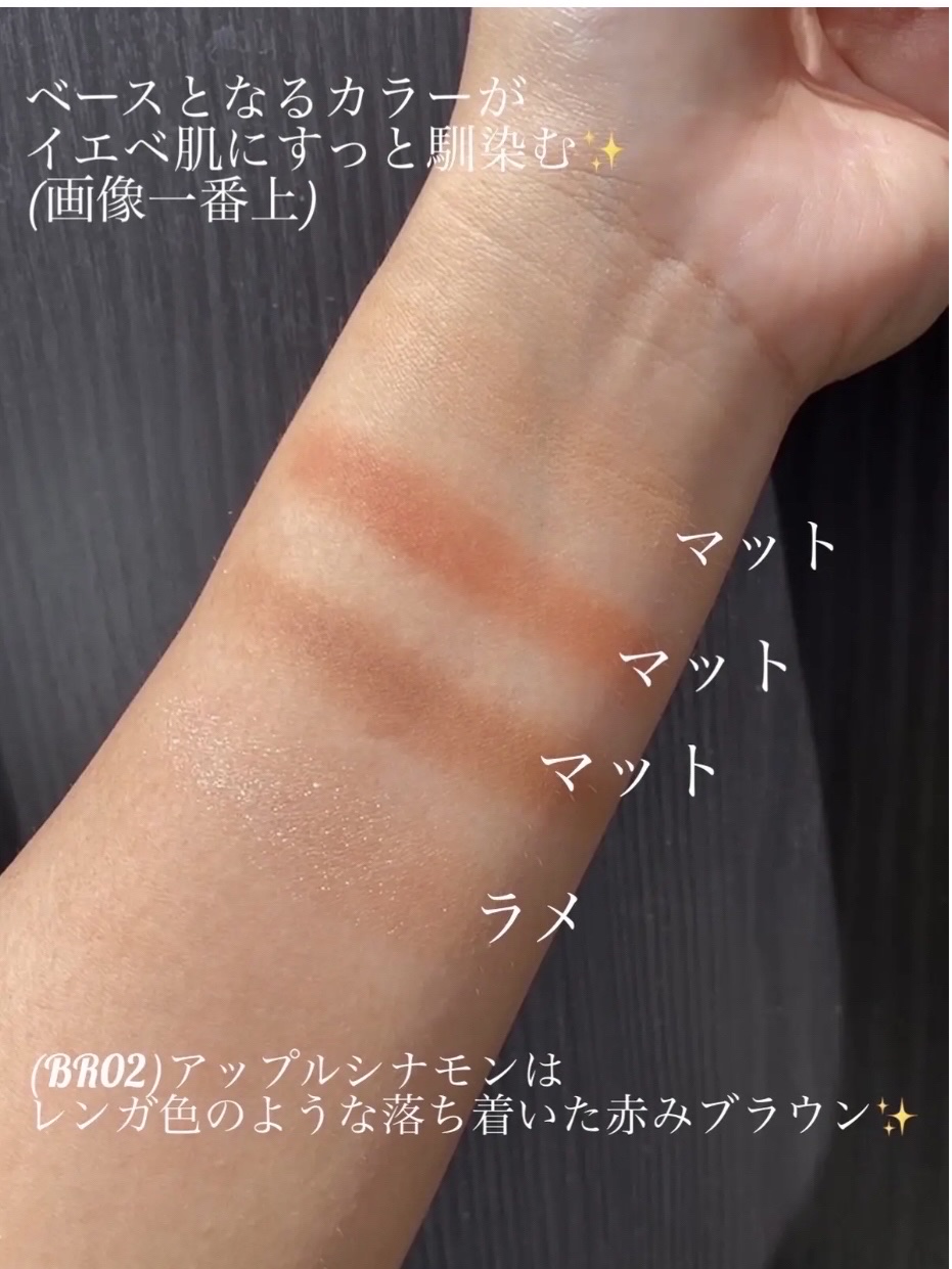 桜色のひと時なんて、ほんっっと手に入らない!!って事で話題になってたよね😭 ばぶみたっぷり、話題のうさぎ舌カラー🐰🩵 グリーンパールを纏ってるから、深みも出て学生さん〜大人までみんなが付けやすいピンク💋 柔らかさに、深みもIN…✨ イエベもブルベも使いやすいピンク、絶対チェックしてほしい…😭!!!! 真夜中の褒美は、深い赤みブラウン+グリーンパールで、妖艶な色気唇を演出🪄 ただの赤ではなく、ブラウンが混ざり合う事で大人の赤って感じの発色✨ 濃いメイクにベタ塗りするのが個人的に1番のお気に入り…💋(フチはぼかしてね🙆♀️) ティッシュオフして軽めに使うのも可愛いけどけ🥰 オフしても、ラメはきらんきらん残る🤭 (これだけラメがしっかり付くのすごい💐) 2位の秘めた炎はミルクティーを注いだような上品ミルクティーブラウン🪄 このカラーも大人っぽくて、普段使いしやすそう🥺