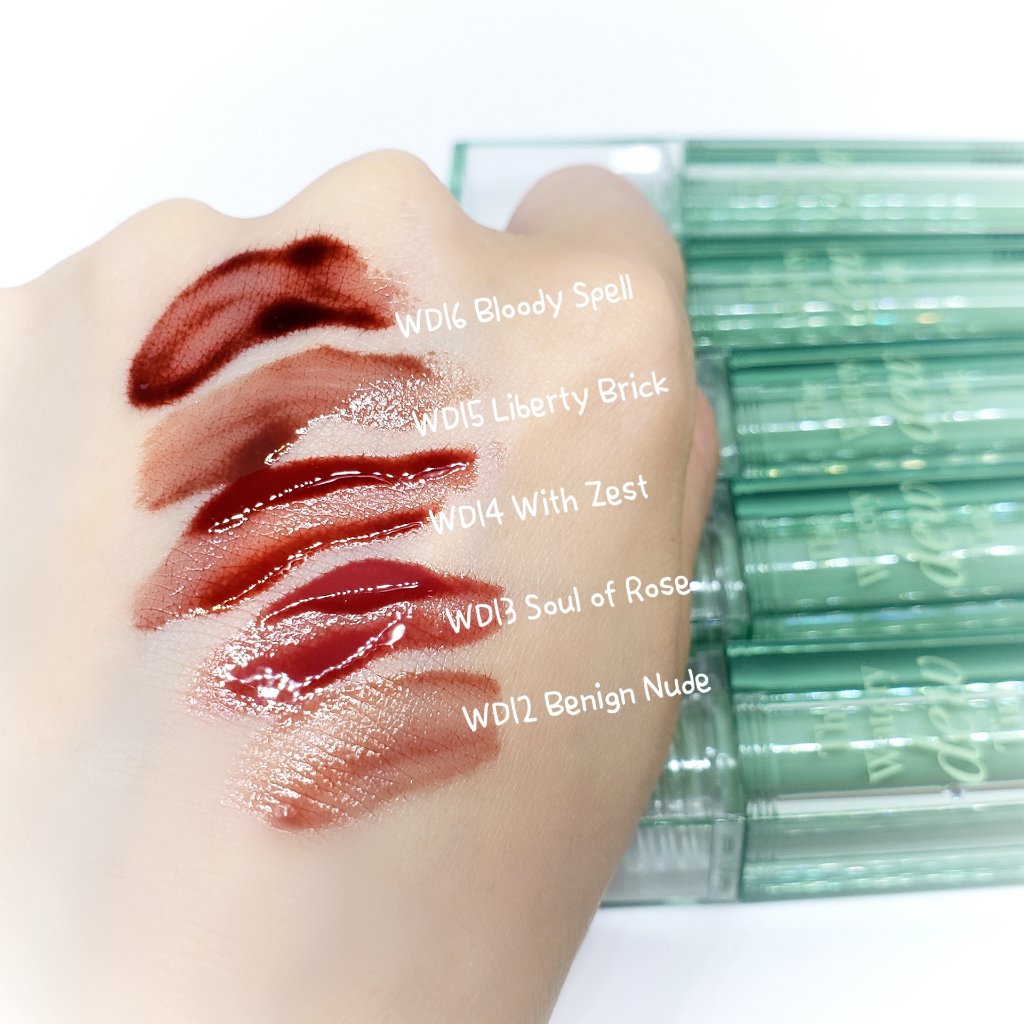 - <WD2 ビトゥン ローズ> 水、ジフェニルジメチコン、リンゴ酸ジイソステアリル、ビスジグリセリルポリアシルアジペート-2、水添ポリイソブテン、ジグリセリン、DPG、セチルPEG/PPG-10/1ジメチコン、イソステアリン酸ソルビタン、ポリソルベート60、ペンチレングリコール、オクチルドデカノール、セテアレス-20、(アクリル酸ヒドロキシエチル/アクリロイルジメチルタウリンNa)コポリマー、スクワラン、フェノキシエタノール、ポリグリセリン-3、ステビオシド、香料、エチルヘキシルグリセリン、グリセリン、シア脂、ツバキ種子油、トリ(カプリル酸/カプリン酸)グリセリル、アルガニアスピノサ核油、ホホバ種子油、アーモンド油、アンズ核油、月見草油、オリーブ果実油、テトラ(ジ-t-ブチルヒドロキシヒドロケイヒ酸)ペンタエリスリチル、カニナバラ果実エキス、マンゴー果実エキス、赤104(1)、赤227、黄5、青1 <WD3 ピンク ヘイズ> 水、ジフェニルジメチコン、リンゴ酸ジイソステアリル、ビスジグリセリルポリアシルアジペート-2、水添ポリイソブテン、ジグリセリン、DPG、セチルPEG/PPG-10/1ジメチコン、イソステアリン酸ソルビタン、ポリソルベート60、ペンチレングリコール、オクチルドデカノール、セテアレス-20、(アクリル酸ヒドロキシエチル/アクリロイルジメチルタウリンNa)コポリマー、スクワラン、フェノキシエタノール、ポリグリセリン-3、ステビオシド、香料、エチルヘキシルグリセリン、グリセリン、水酸化Al、ポリアクリル酸アンモニウム、BG、アルガニアスピノサ核油、シア脂、ツバキ種子油、トリ(カプリル酸/カプリン酸)グリセリル、アーモンド油、アンズ核油、ホホバ種子油、月見草油、オリーブ果実油、テトラ(ジ-t-ブチルヒドロキシヒドロケイヒ酸)ペンタエリスリチル、マンゴー果実エキス、カニナバラ果実エキス、酸化チタン、赤104(1)、赤227、黄5、青1 <WD4 オールウェイズ ヤング> 水、ジフェニルジメチコン、リンゴ酸ジイソステアリル、ビスジグリセリルポリアシルアジペート-2、水添ポリイソブテン、ジグリセリン、DPG、セチルPEG/PPG-10/1ジメチコン、イソステアリン酸ソルビタン、ポリソルベート60、ペンチレングリコール、オクチルドデカノール、セテアレス-20、(アクリル酸ヒドロキシエチル/アクリロイルジメチルタウリンNa)コポリマー、スクワラン、フェノキシエタノール、ポリグリセリン-3、ステビオシド、香料、エチルヘキシルグリセリン、グリセリン、シア脂、ツバキ種子油、トリ(カプリル酸/カプリン酸)グリセリル、アルガニアスピノサ核油、ホホバ種子油、アーモンド油、アンズ核油、月見草油、オリーブ果実油、テトラ(ジ-t-ブチルヒドロキシヒドロケイヒ酸)ペンタエリスリチル、カニナバラ果実エキス、マンゴー果実エキス、赤104(1)、赤227、黄5、青1 <WD6 クラッシュド パンプキン> 水、水添ポリイソブテン、リンゴ酸ジイソステアリル、ビスジグリセリルポリアシルアジペート-2、ジフェニルシロキシフェニルトリメチコン、ジフェニルジメチコン、ポリグリセリン-3、オクチルドデカノール、ポリソルベート60、セチルPEG/PPG-10/1ジメチコン、ラウリン酸ポリグリセリル-10、ペンチレングリコール、1,2-ヘキサンジオール、(アクリル酸ヒドロキシエチル/アクリロイルジメチルタウリンNa)コポリマー、PEG-60水添ヒマシ油、セテアリルアルコール、スクワラン、キシリトール、エチルヘキシルグリセリン、香料、ポリアクリル酸アンモニウム、イソステアリン酸ソルビタン、水酸化Al、フェノキシエタノール、BG、トコフェロール、酸化チタン、酸化鉄、赤227、黄4、黄5、青1 <WD8 ビンテージ カラント> 水、水添ポリイソブテン、リンゴ酸ジイソステアリル、ビスジグリセリルポリアシルアジペート-2、ジフェニルシロキシフェニルトリメチコン、ジフェニルジメチコン、オクチルドデカノール、ポリグリセリン-3、ポリソルベート60、セチルPEG/PPG-10/1ジメチコン、ラウリン酸ポリグリセリル-10、1,2-ヘキサンジオール、ペンチレングリコール、(アクリル酸ヒドロキシエチル/アクリロイルジメチルタウリンNa)コポリマー、PEG-60水添ヒマシ油、セテアリルアルコール、スクワラン、キシリトール、エチルヘキシルグリセリン、香料、イソステアリン酸ソルビタン、トコフェロール、赤104(1)、赤227、黄5、青1 <WD9 ミスター ストレンジャー> 水、水添ポリイソブテン、リンゴ酸ジイソステアリル、ビスジグリセリルポリアシルアジペート-2、ジフェニルシロキシフェニルトリメチコン、ジフェニルジメチコン、オクチルドデカノール、ポリグリセリン-3、ポリソルベート60、セチルPEG/PPG-10/1ジメチコン、ラウリン酸ポリグリセリル-10、1,2-ヘキサンジオール、ペンチレングリコール、(アクリル酸ヒドロキシエチル/アクリロイルジメチルタウリンNa)コポリマー、セテアリルアルコール、PEG-60水添ヒマシ油、スクワラン、キシリトール、エチルヘキシルグリセリン、香料、イソステアリン酸ソルビタン、水酸化Al、ポ