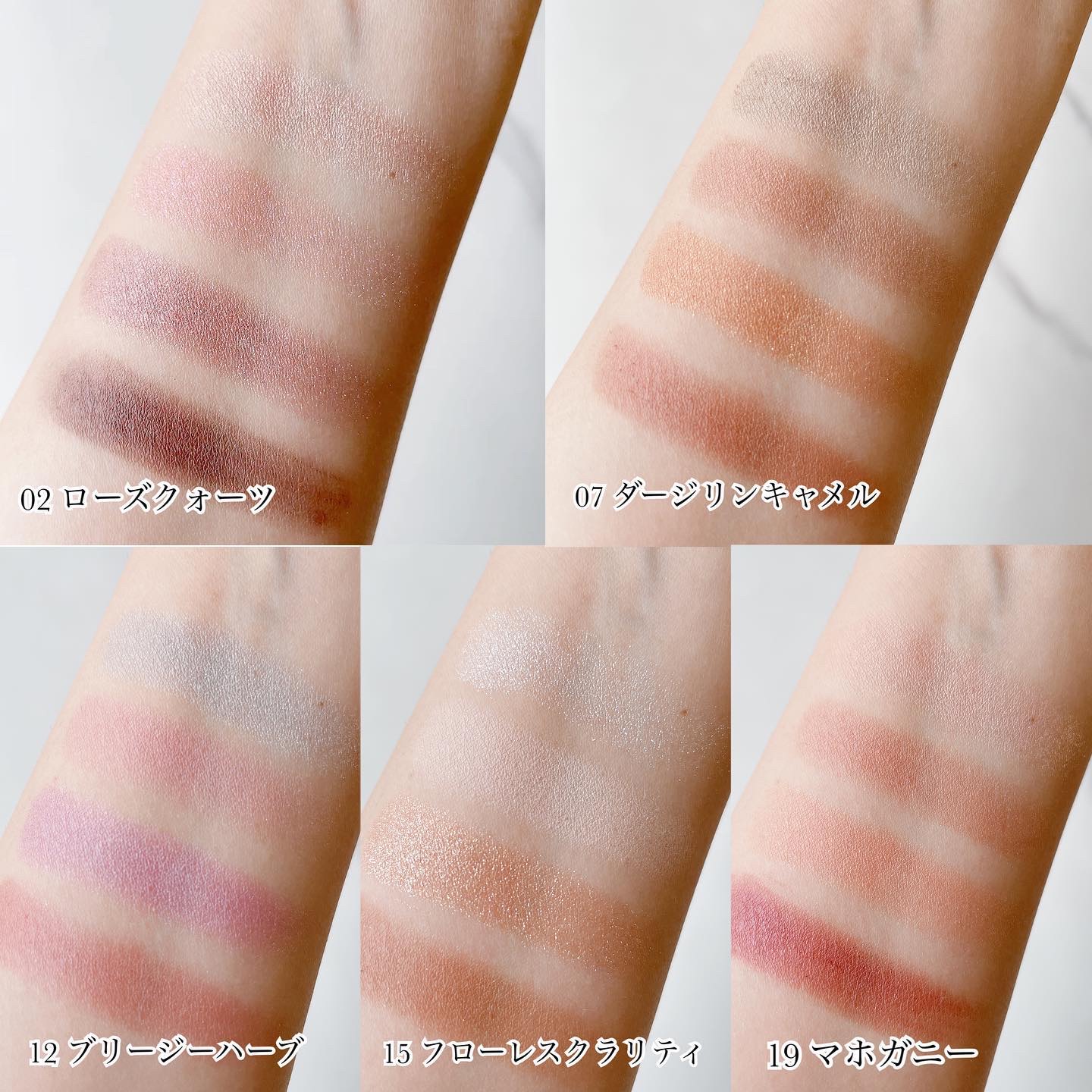 リニューアル前の人気色は粉の処方のみの変更でそのまま既存色として残っていているので、色選びで迷っている方の参考になれば嬉しいです🫶🏽 どんなシーンでも万能に使いたい方はヌードドレスやポンチョがおすすめ💛 ブルベさんにはソフトカシミア🫧 秋にはミッツァが使いたくなりますねっ!🍂
