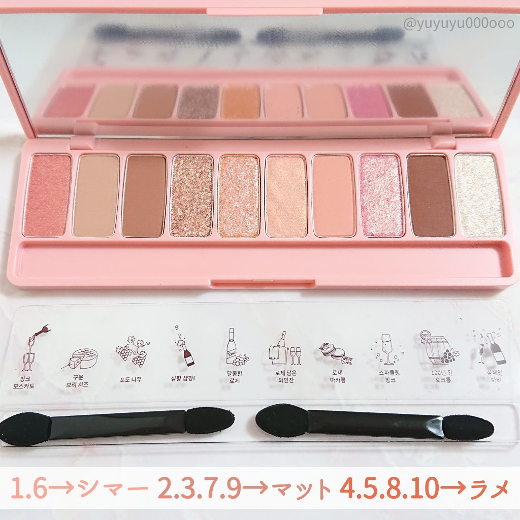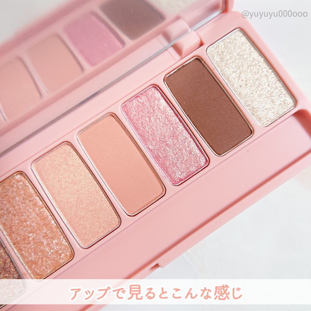 ロゼピンク系のカラーが配色されたパレット! マットもラメも入ってるし、10色もあると色々なメイク出来ると思います。 使いやすい感じのナチュラルな色味の配色になっててほわっとしたピンクメイクになって可愛い🩷 このシリーズほんと可愛いし、持ってないパレットも欲しいな〜