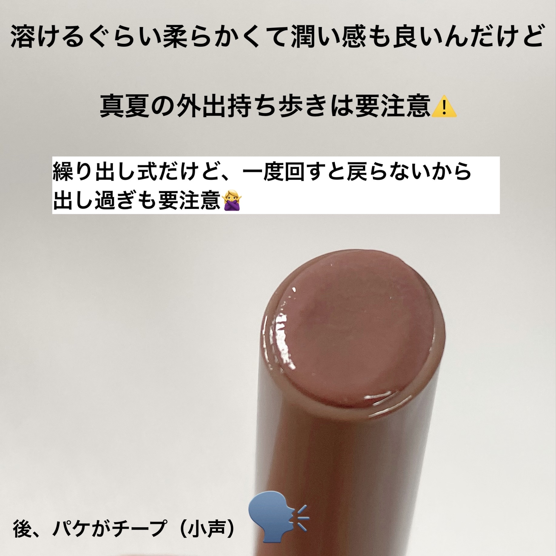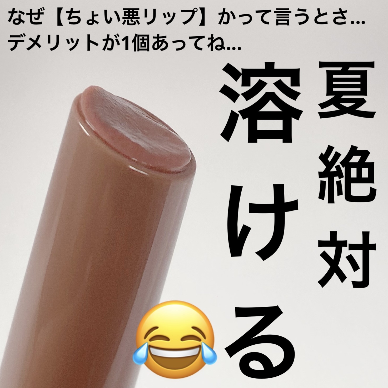 | 口紅・グロス・リップライナーランキング第165位 | 溶けるとオイルっぽいテクスチャーなのですが しっとり感がある割にサラッとしていて ベタつかないので使いやすい! | 詳細を見る | ||
