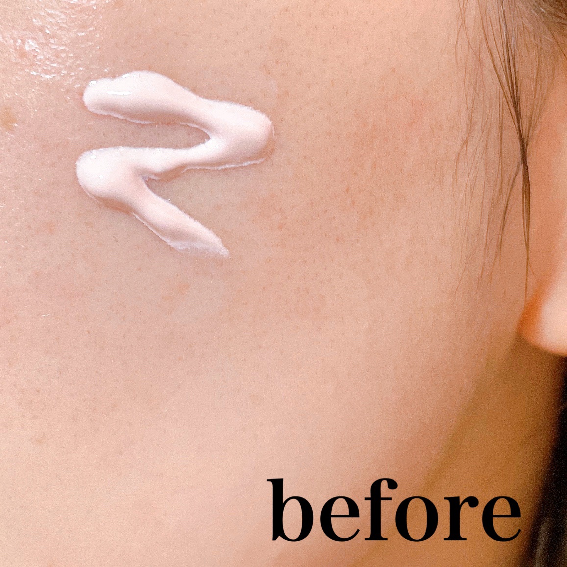 テクスチャーは滑らかで、とても伸びが良いです💕 本当に日焼け止め?と疑うほど、クリームのような心地よい使用感😌 きしむ感じやカサカサ感が全くなく、お肌に潤いを与えてくれる感覚に。 そしてお気に入りポイントは化粧下地としても使えること!日焼け止めと下地を両方塗らなくても良いのは便利ですよね✨ 白浮きしない程度に程よくトーンアップもしてくれるので、私はちょっとしたお出かけのときはファンデなしでこれひとつでベースを済ませちゃいます☺️ 肌負担かけずに時短でメイク完成できちゃうのがお気に入り💕