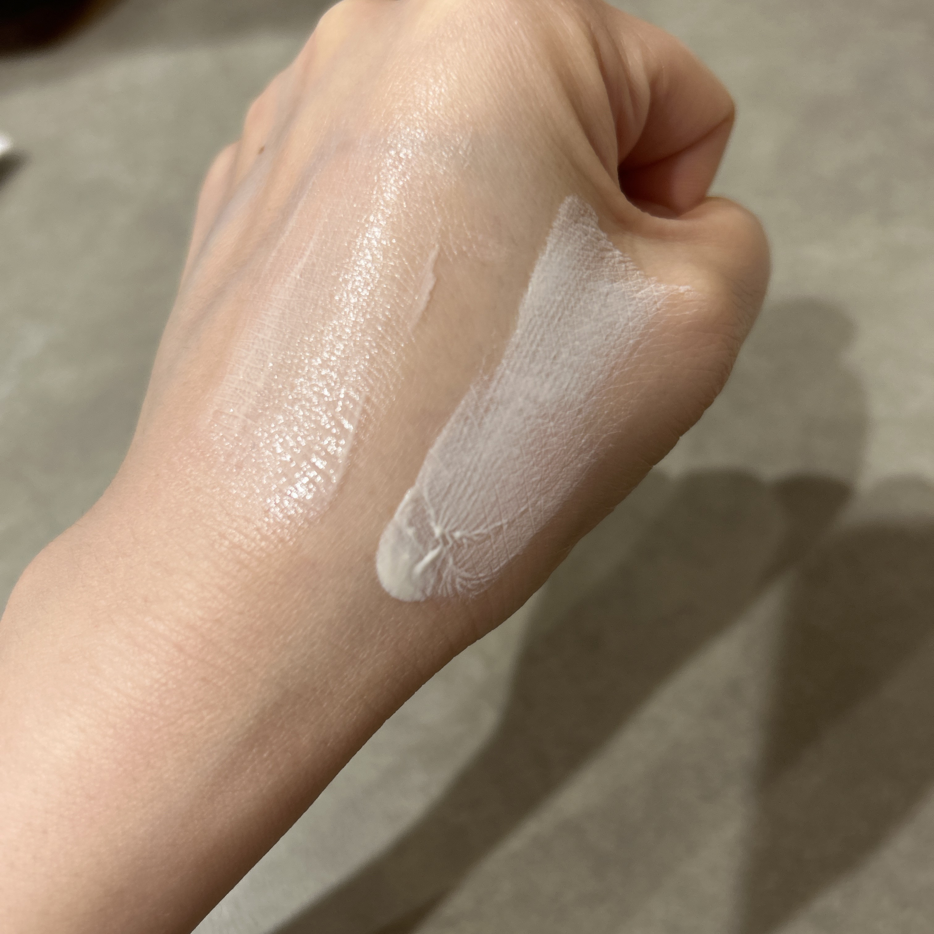 こちらのシリーズは、とても人気の商品でクリアはリピ買いし元々使用していました。 SPF50+、PA ++++で夏にも安心して使えるため、日頃より愛用しています。 クリア、ローズとの色味の比較は3枚目〜載せております。 比べると、クリアのものは出した後と少し伸ばした後は白く色づきますが、しっかり伸ばすとクリアになり色味はありません。しかし、しっかりトーンアップとツヤ感を出してくれます。 ローズの方も同じようにトーンアップとツヤ感は出してくれる上に血色感もプラスしてくれます。 どちらとも、トーンアップはしっかりしていますが、補正効果はそこまでないかと思います。 平日はこちらとパウダー程度で使用することが多いですが、日中の乾燥もそこまで気になりません。 ドラッグストアでも買える商品なのでオススメです。