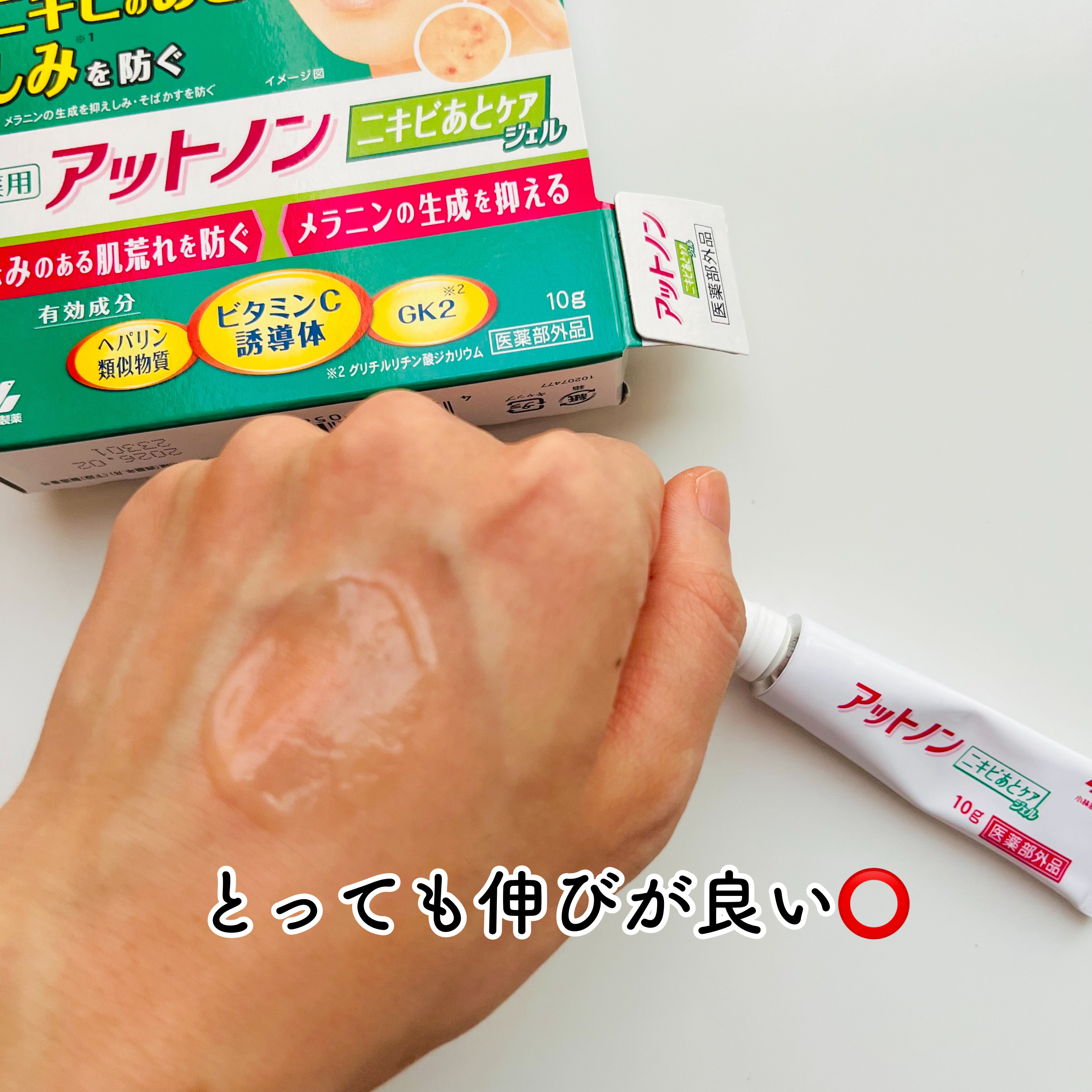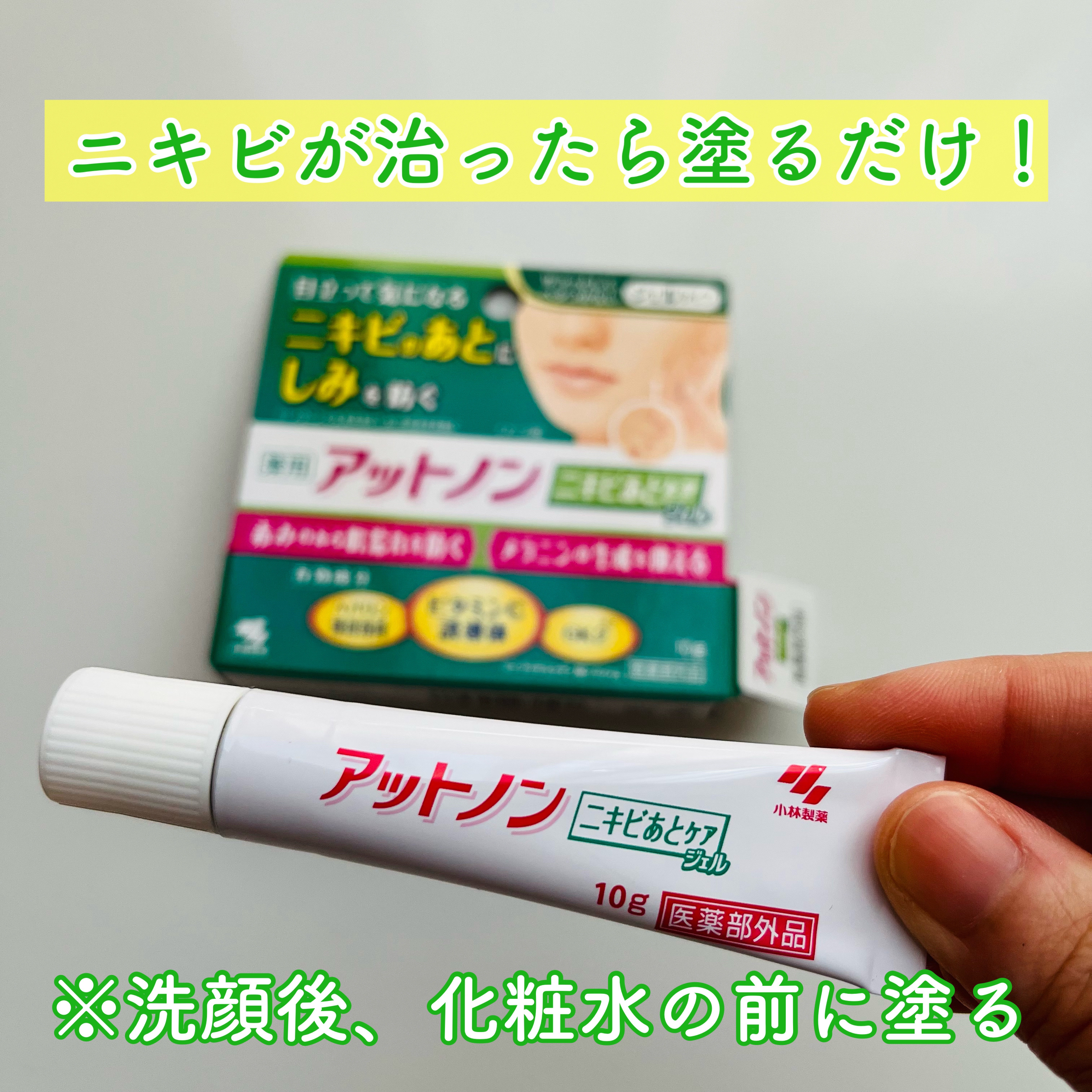 \ニキビのあとケア、コレ使って♡/ニキビのあとは、刺激などの炎症によりメラニンの生成が促されてしみになりやすいの🥲そうなる前にコレがオススメ!♡小林製薬アットノンニキビあとケアジェル(医薬部外品)スキンケアの最後ではなく洗顔後、スキンケア前に...