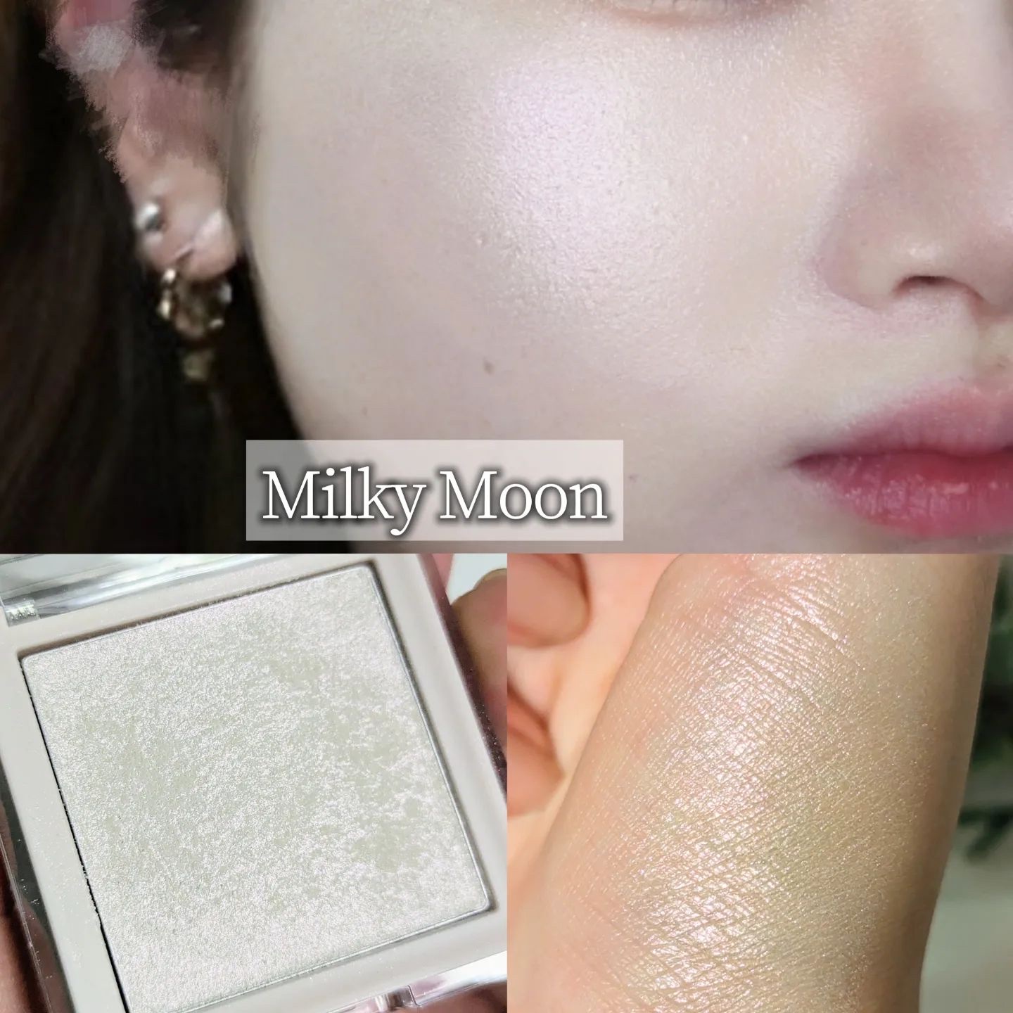 アクリルみたいな質感の四角いパケ コンパクトで持ち運びに便利◎ 2.3gもある大容量で嬉しい! 粉質がまるでデパコスのように細かくて、発色も良き🤍 ▶ハイライター«04 Milky Moon» ほとんど透明なベースに角度によりピンクやホワイトの光がみえる 頬にの高い位置に塗ったら華やかなメイクができる✨