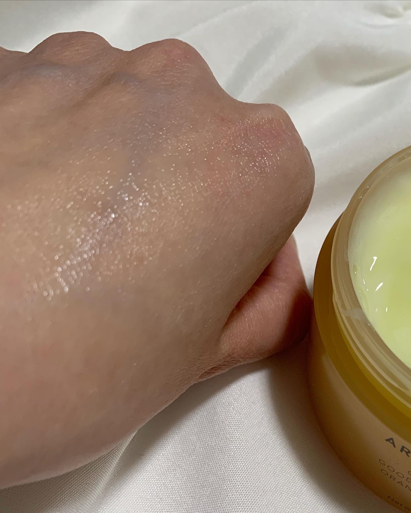 | 比較的こっくりとしたテクスチャーのクリーム。 手に取った時は少し硬めに感じるのに、伸ばすと瑞々しく伸びて、その違いにびっくりした! | 詳細を見る | |||