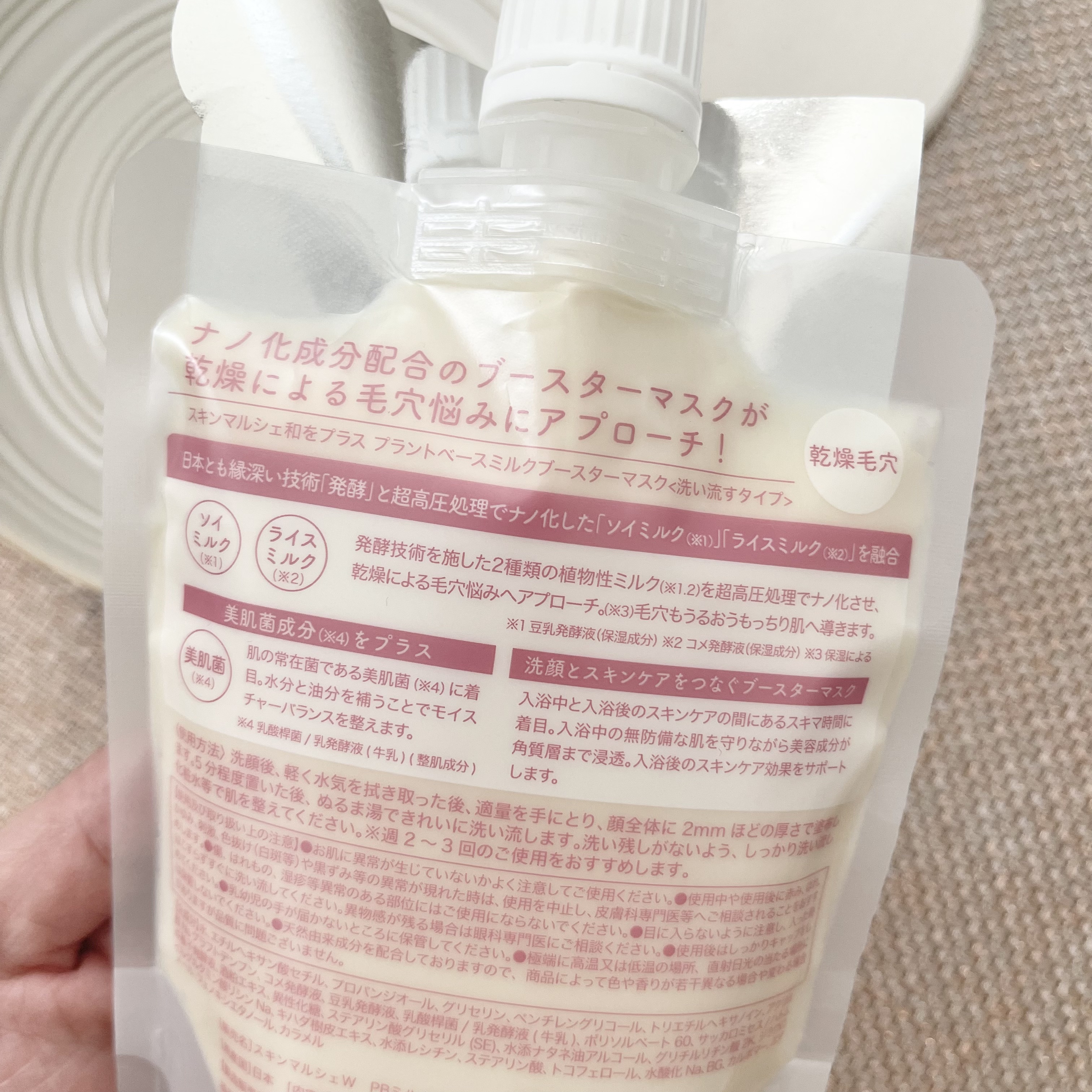 - 吸い付くようなもっちり肌へ!洗顔後にプラスして使用する洗い流すタイプのマスクです。お風呂上がりのスキンケア効果をサポートするナノ発酵植物性ミルク*1が角質層のすみずみまで浸透。カサつき肌や乾燥毛穴、肌のハリにアプローチし乾燥により毛穴が気になる肌もうるおうもっちり肌へ整えます。 *1.超高圧処理を施した豆乳発酵液(保湿成分)、コメ発酵液(保湿成分)