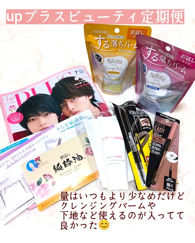 アッププラスビューティ定期便..♪10月分が届きました🥰.先月はあんまり…な内容でしたが、今月はいろいろ気になるものが入っていました😍.受け取ったときにちょっと重いなと思ったら、大量の柔軟剤🤣.柔軟剤はあんまりお試ししないのでどうしよう…とい...