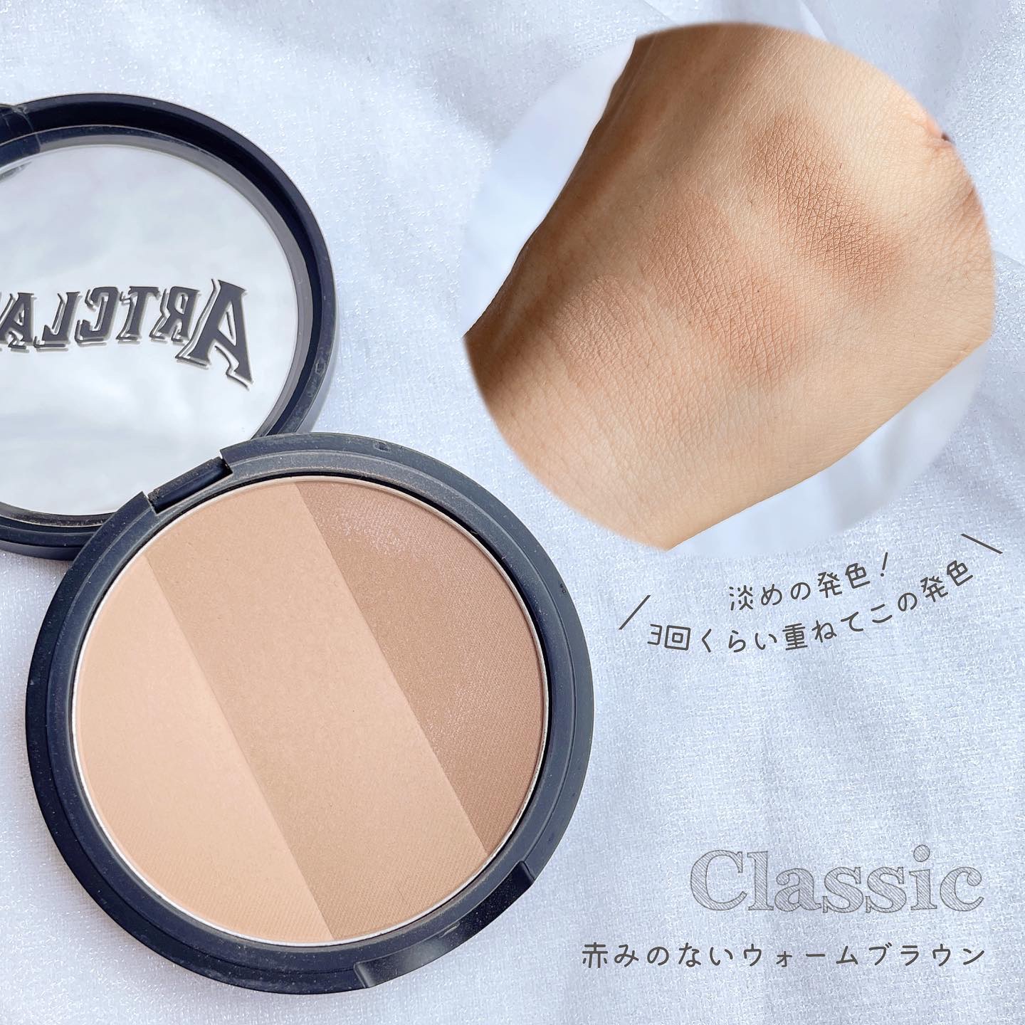 オリーブヤングアワード5年連続1位に輝いたシェーディングで、濃すぎない3色が自然な顔の陰影を演出できる🫶🏻❤︎ 薄づきなのとブラシがついてくるので、シェーディング初心者の方にもおすすめ✨