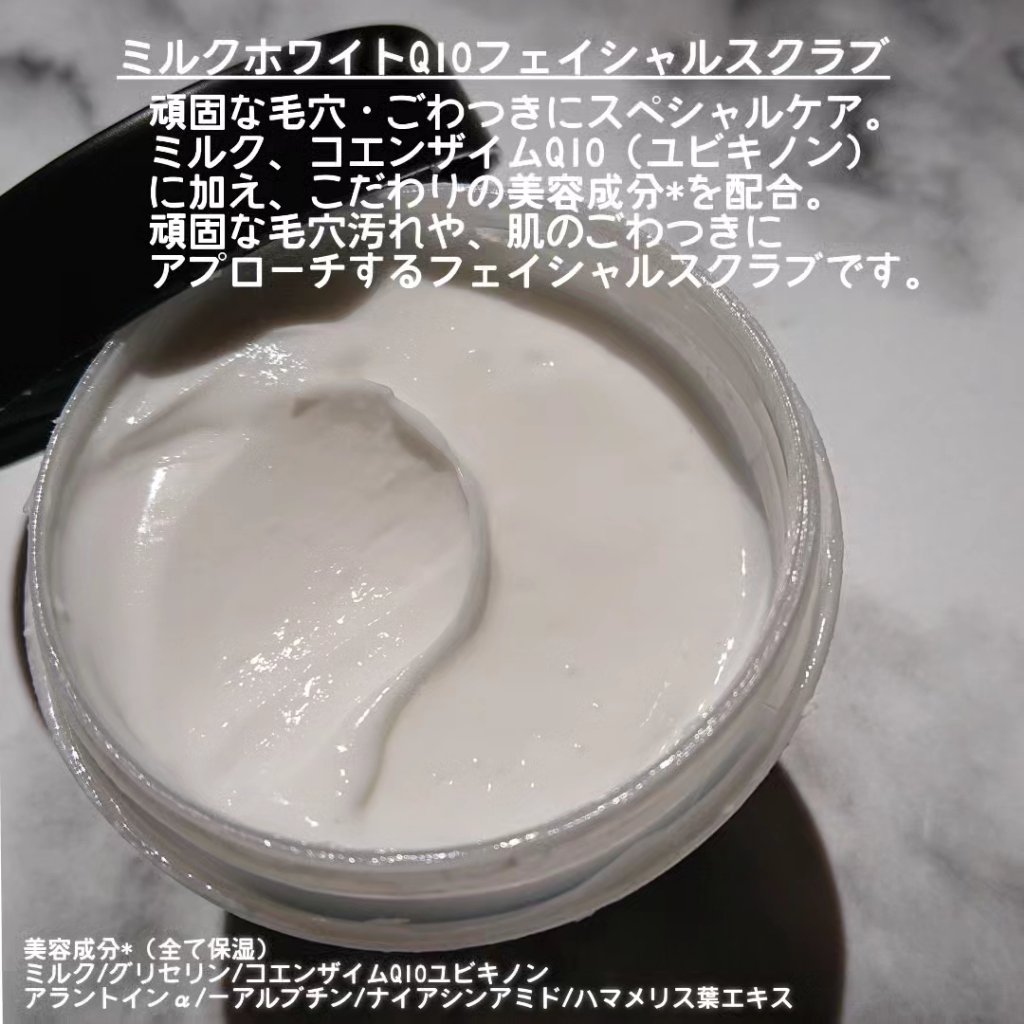 ミルクプロテイン配合でうるすべ肌に アミノ酸系洗浄成分×高級アルコ-ル系洗浄成分 洗顔料はバターみたいなむちむち濃厚系。香りもバターっぽい気がしました! ミルクプロテインの洗顔でつるんとなめらか肌に ︎⸝⋆︎
