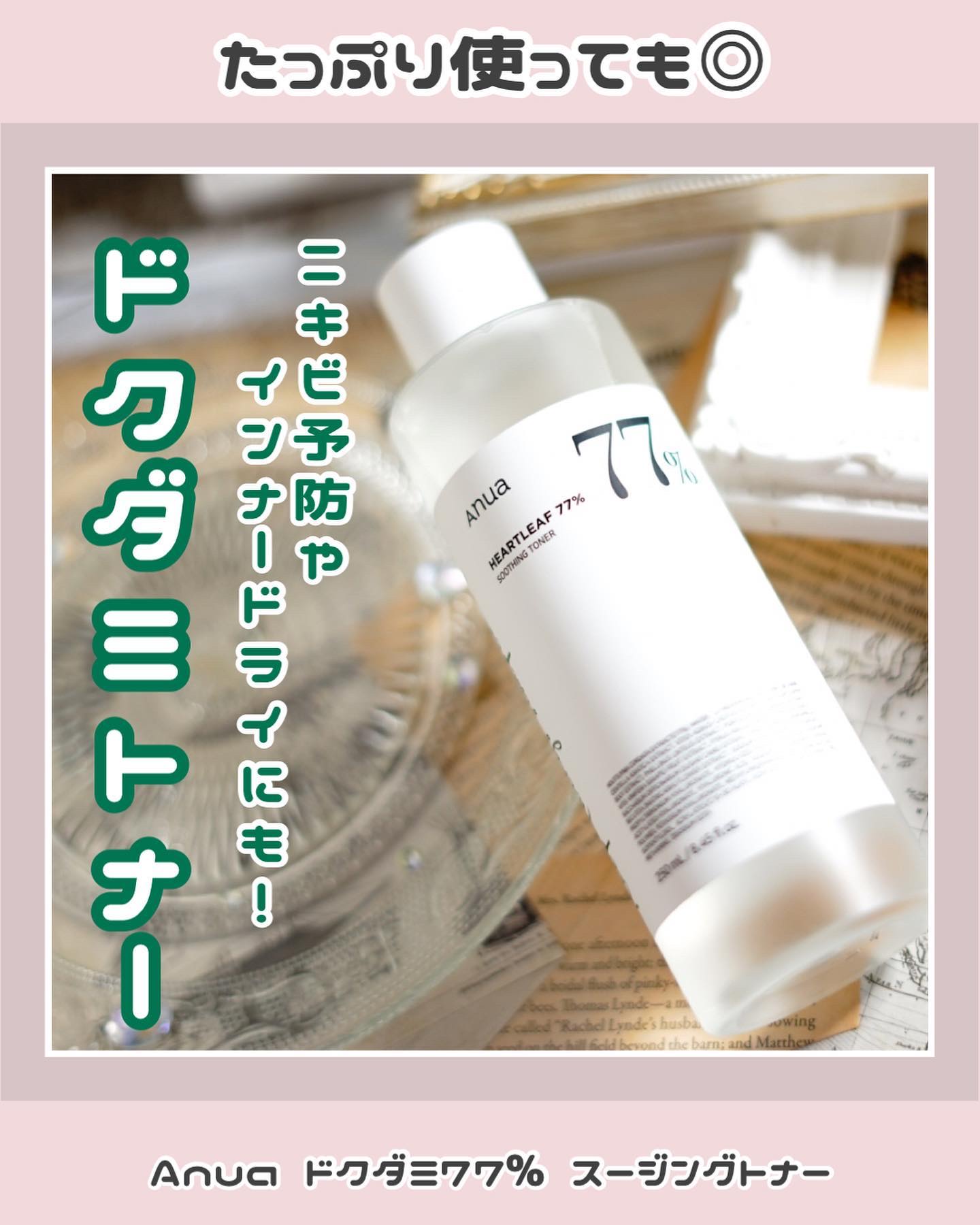 アヌアドクダミシリーズは肌本来の力を引き出し いきいきとした健やかな肌へと導くスキンケア。 みずみずしくてさらっとしたテクスチャーでバシャバシャ使えます。 敏感肌の方も安心して使えるようにパッチテスト済みで低刺激っていうのも嬉しいポイントです。