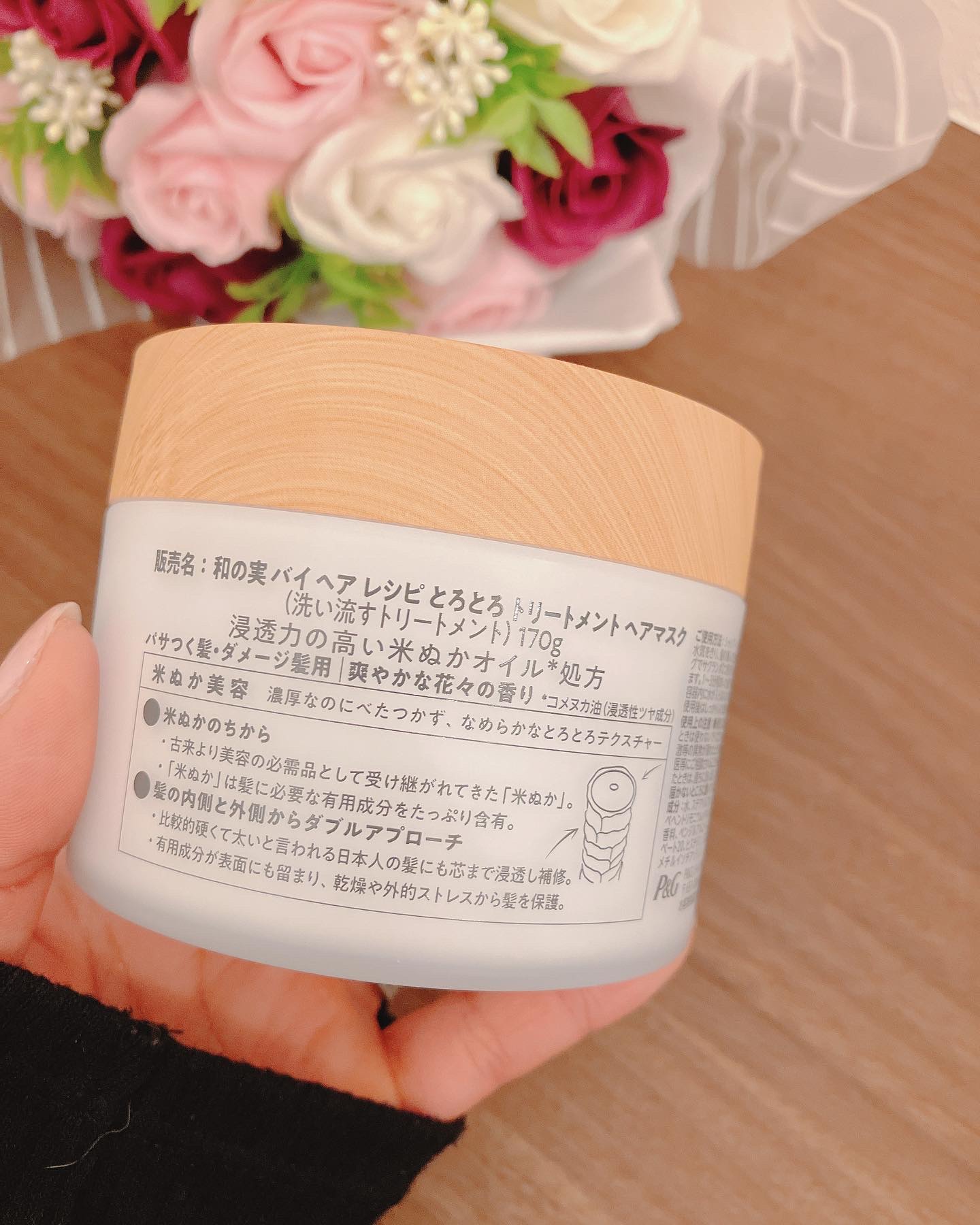 - どんなパサつき、ダメージ髪にも。シリーズ最高濃度の補修成分配合。濃厚なクリームが髪になめらかになじみ、ピュア国産の米ぬかオイル*2 とアミノ酸*3 が、厚くて硬い日本人のキューティクルへもしっかり浸透し補修。濃厚なのにべたつかず、毛先まで潤いで満たします。秘密はとろけるような“とろとろ”のテクスチャー。心地よいなめらかさで、髪 1 本 1 本を包み込み、髪の根元から毛先までうるおいを与えます。有用成分が表面にもとどまり、乾燥や外的ストレスから髪を保護*4。天使のつや髪へ導きます。 パッケージはお米を連想させる、枡の洗練されたデザインを採用。 スタイリッシュなデザインとともに爽やかな花々の香りで癒しのバスタイムをお楽しみください。 *1 和の実 by ヘアレシピシリーズが受賞した累計(累計期間:2020/09-2022/06)詳細は公式 HP へ / *2 コメヌカ油(浸透性ツヤ成分) *3 ヒスチジン(浸透性保湿成分)/ *4 シリーズ使いにより