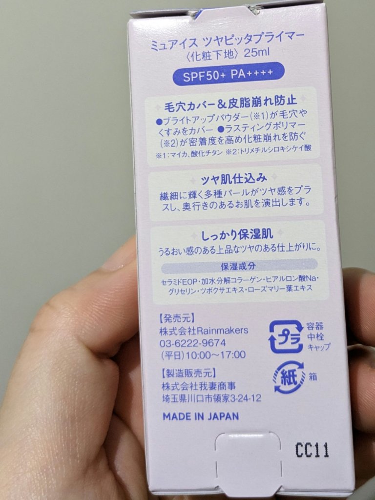 ツヤ仕上がり☆ ナイアシンアミド配合、保湿成分。 使うたび、素肌までうるおいます。 10時間みずみずしいツヤ肌仕上がりが続きます。 肌荒れを防ぐといわれる、ビタミンE配合。 肌に優しく、負担感のない仕上がり。 前に紹介してる、水色(マット)のよりは、 ツヤ肌仕上げが好きな方にオススメです。 カバー力はそんなにないかなぁ。 崩れ方汚くありません。 付けてて、お肌に優しい感じがします。 今日も付けてます😊 紫外線効果そんなに高くないので、 紫外線防止効果の高いものを下地に使ってください!