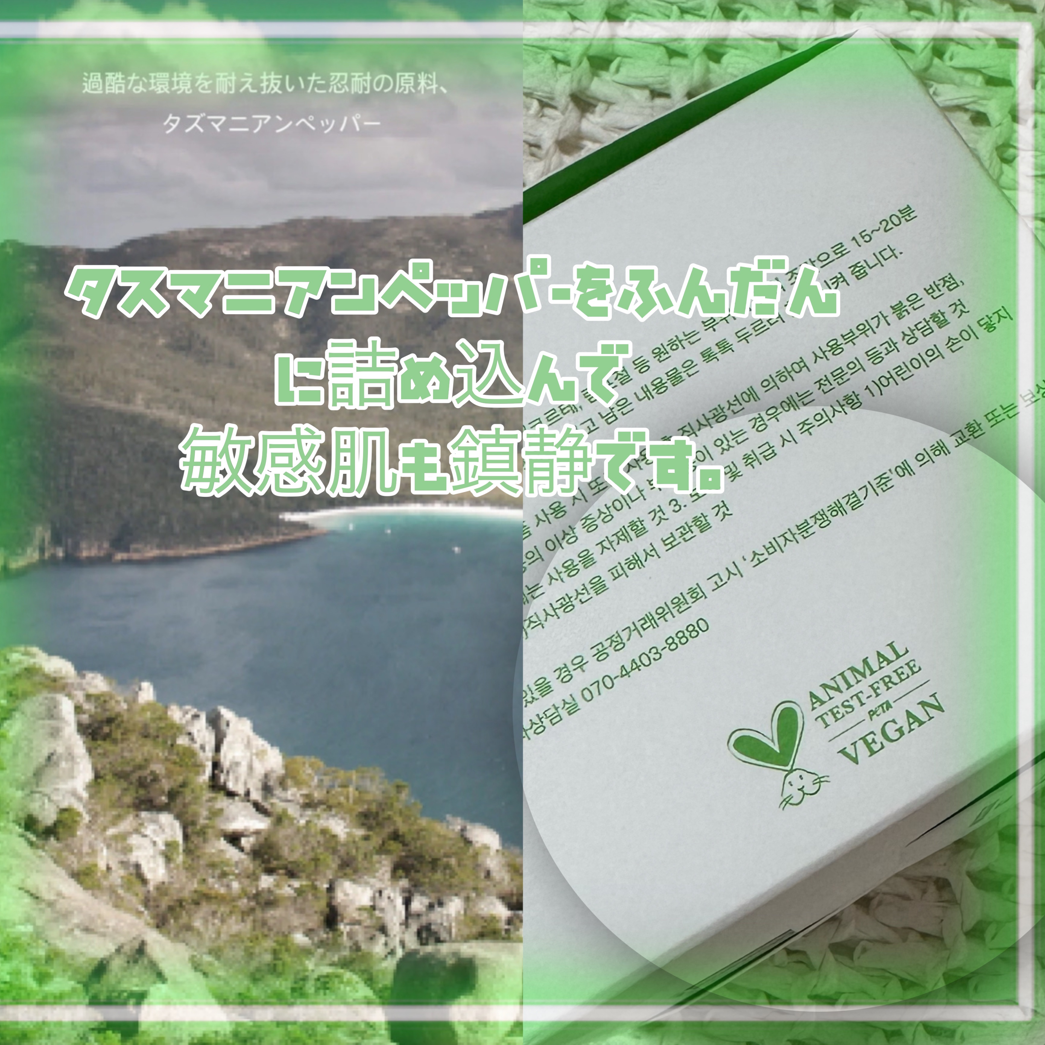 - 精製水、DPG、グリセレス‐26、ベタイン、グリセリン、1,2‐ヘキサンジオール、ヒドロキシアセトフェノン、乳酸桿菌培養溶解質液、ナタマメ種子エキス、イナゴマメ種子エキス、ダイズ種子エキス、ヒラマメ種子エキス、リョクトウ種子エキス、クズ根エキス、アラントイン、ラウリン酸ポリグリセリル-10、エチルヘキシルグリセリン、EDTA-2Na、ヒドロキシエチルセルロース、クエン酸Na、タスマニアランセオラタ葉エキス(200ppm) ミルエキス、クエン酸、メチルジイソプロピルプロピオン酸アミド、BG、オリーブオイル、安息香酸Na、シトルスメジカブルガリル果皮油、ソルビン酸K、ローズマリー葉油、アオモジ果実油、ウイキョウ油、コリアンダー果実油、ハッカ葉油、ツボクサ葉エキス、トウモロコシ葉エキス