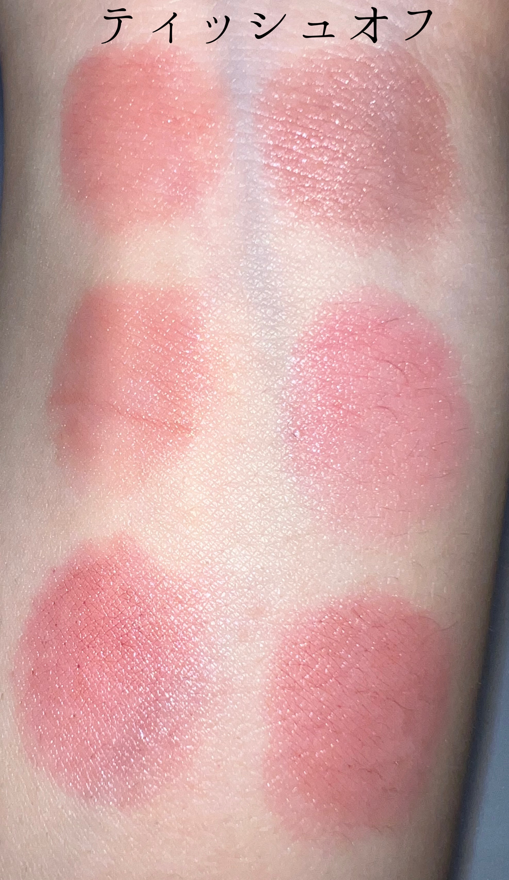 全体的に肌馴染みの良い色味で使いやすい!テクスチャーは硬すぎず柔らかすぎずといった感じで塗り心地も良いです🙆♀️ ティッシュオフ後も抜群の色持ちでマスクへの色移りも少なめでした。落ち方は内側に残るような感じで比較的綺麗です。ふわっと色づくような発色が続くのでいい感じ!!こなれ感も出ます! 質感は限りなくマット寄りのツヤ系といった印象💄 ほんの少しだけ乾燥が気になるかもしれません。 現時点ではバズったリップモンスターやネンマクフェイクルージュより店舗に在庫が残っていて入手しやすいので狙いどき!! パッケージはネンマクフェイクルージュと同じ形で水色とシルバー。爽やかで可愛い上、黒いパッケージのリップたちより比較的指紋が目立ちにくいところもいい感じです💙🤍 カラー展開が豊富なのも良い!