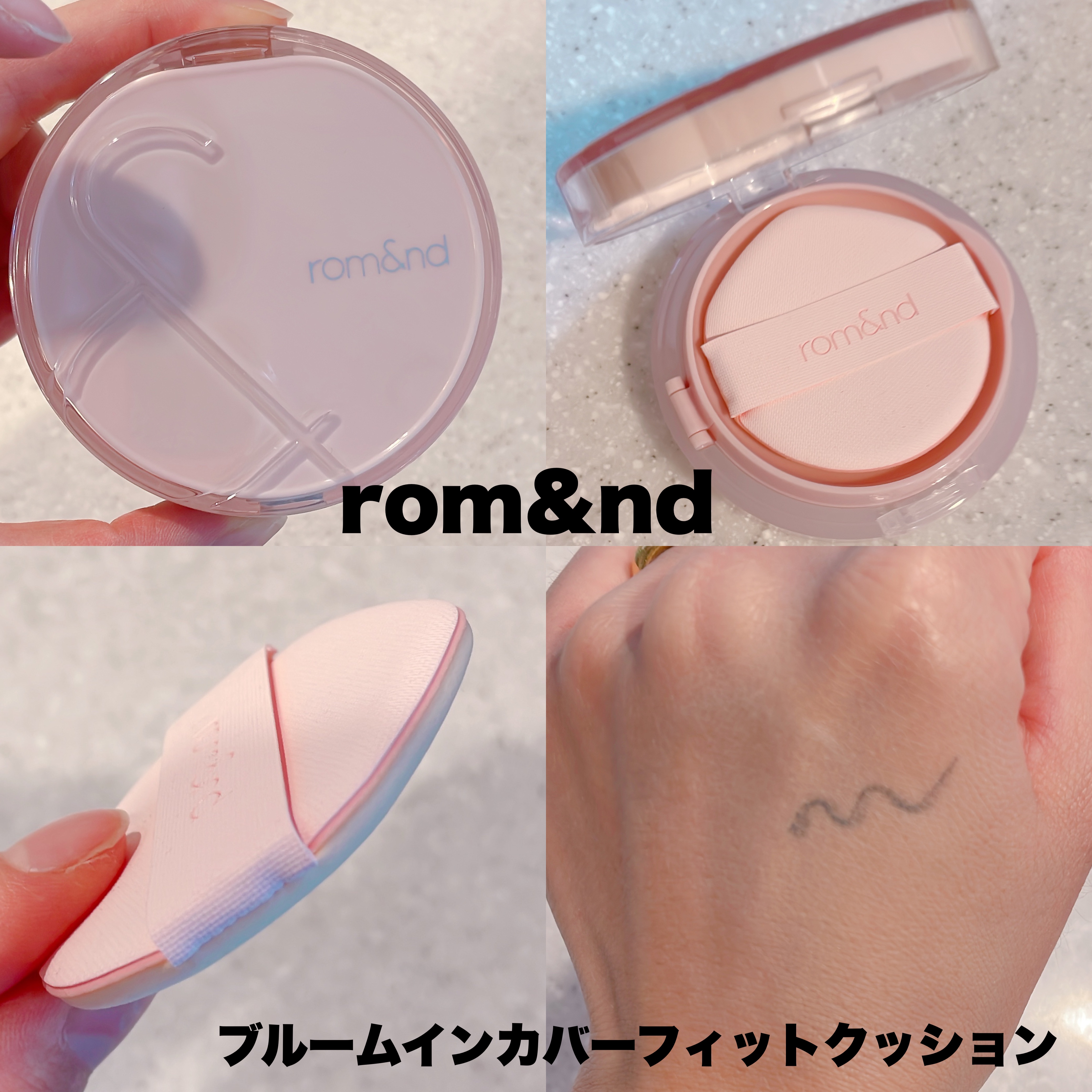 ロムアンドのブルームインカバーフィットクッションを使ってみました✨ティントとセットのミニサイズコスメです。以前イベントでいただきました😊パフは指1本入るくらいのサイズで塗りにくさはありますが…カバー力は抜群!毛穴も目立たなくしてくれます。21...