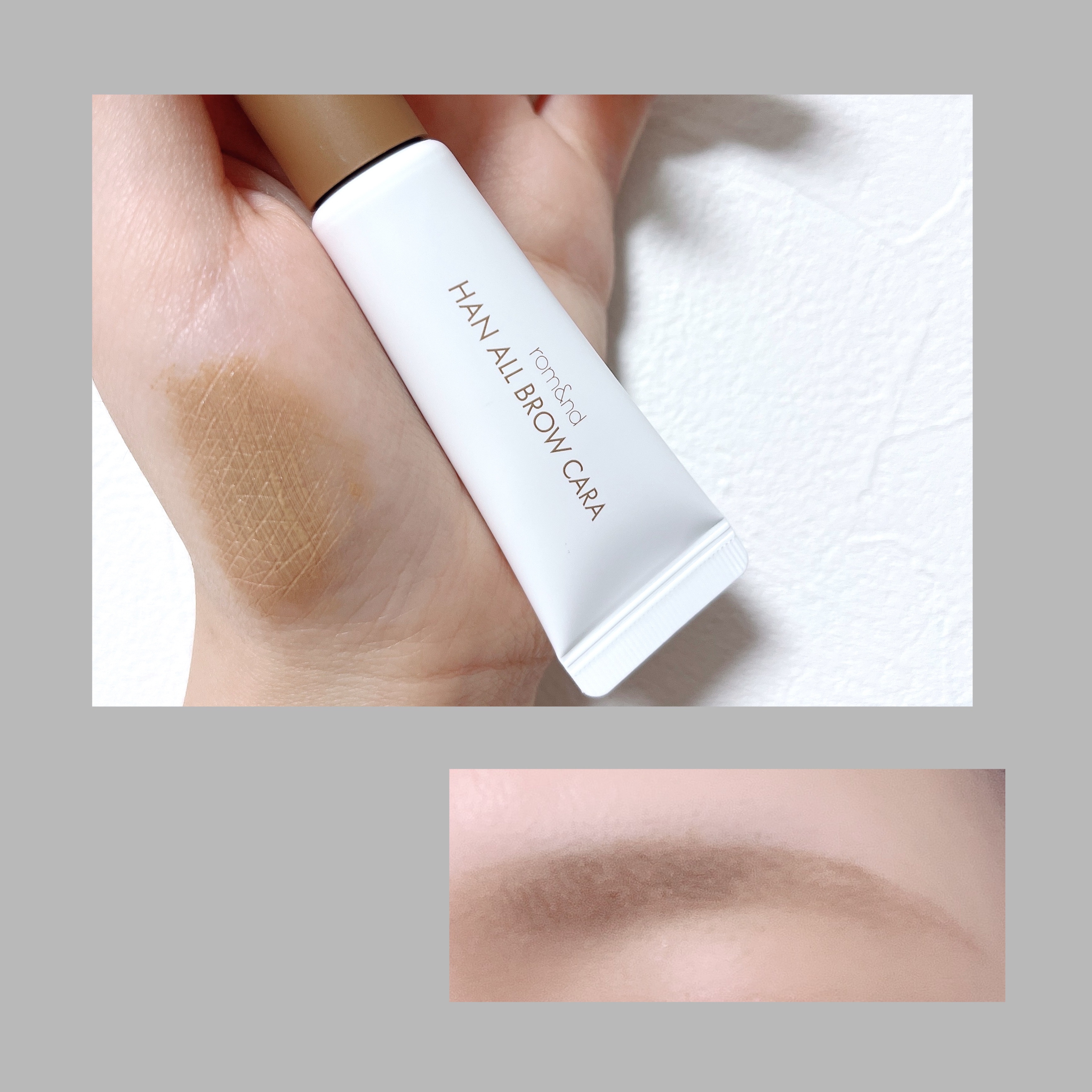 【#rom&nd/#ハンオールブロウカラ】11.モカグレーMOCHAGREY白みを感じるグレイッシュなカラーの眉マスカラ👀白みが自眉毛の黒さを抑えつつブラウングレイッシュの色味で自然に薄眉のような印象に仕上がると感じました!!色味もブラウンに...