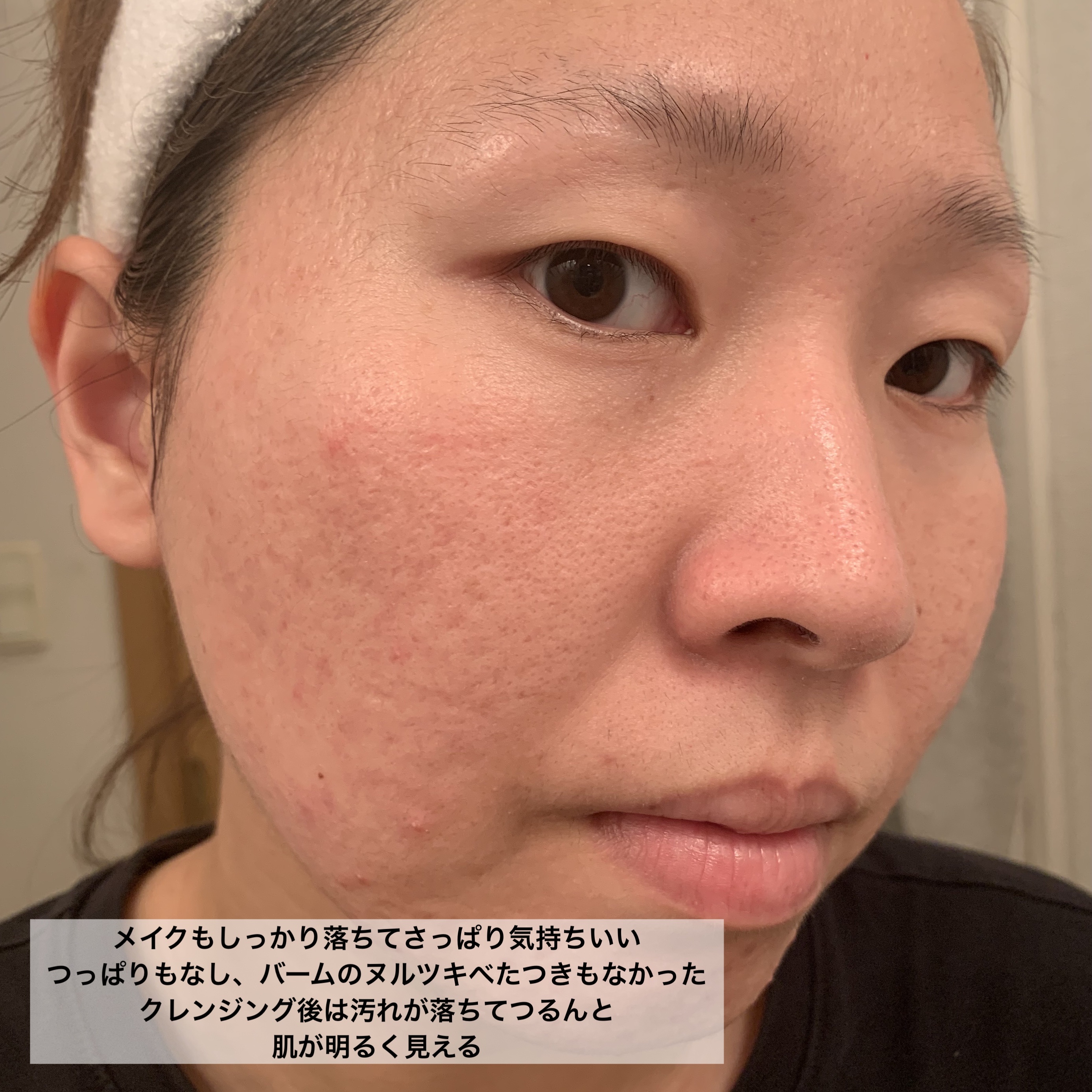 ほんのり柑橘系の香りです♡ バーム状ですので、少し硬めのテクスチャーですが、お肌に馴染ませると、すぐに柔らかいテクスチャーに変わります♪ 乾燥肌ですが、嫌なツッパリ感もなく問題なく使用できています♡ 洗い上がりは“さっぱり”感より“しっとり”感かなと個人的に感じました。 私は好きなクレンジングです。