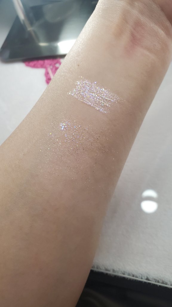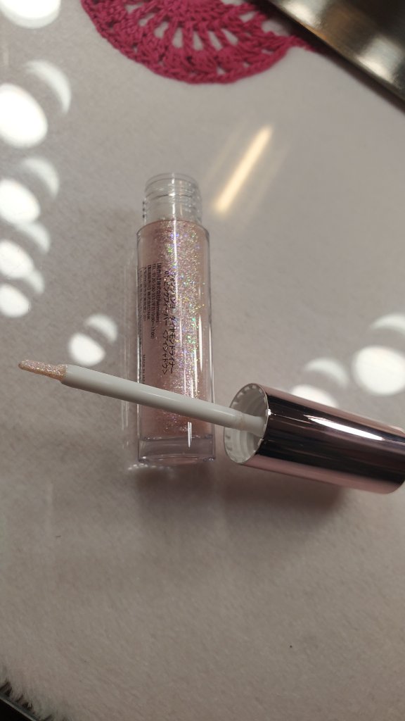 ピンクが主な中に多色グリッターがざくざく入っているライナー💓🩵🩷 結構ざくざくめで大粒のラメがちらちら輝き眩い輝きを放ちます✨✨ フラッシュたいて撮るとその輝き感がより分かります!