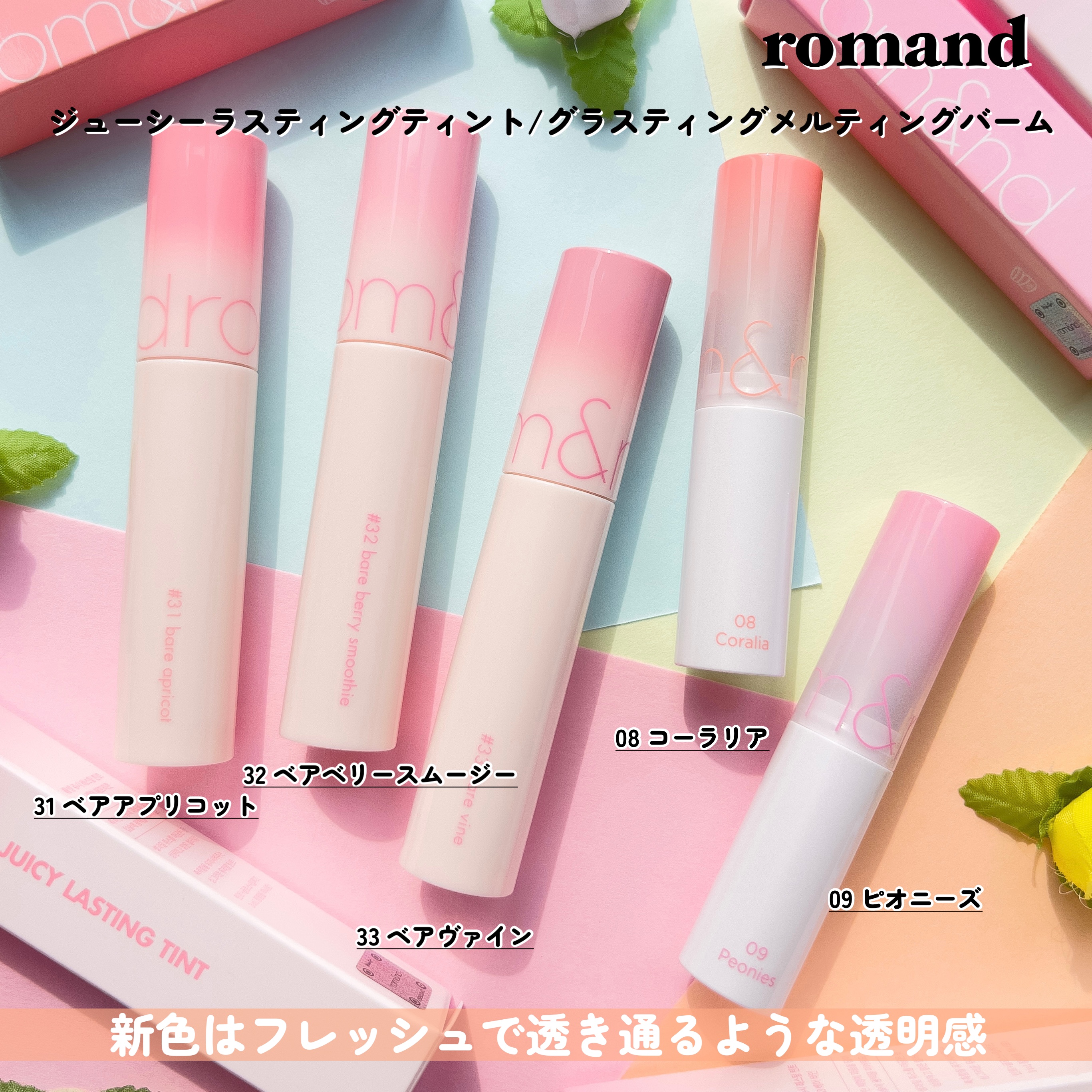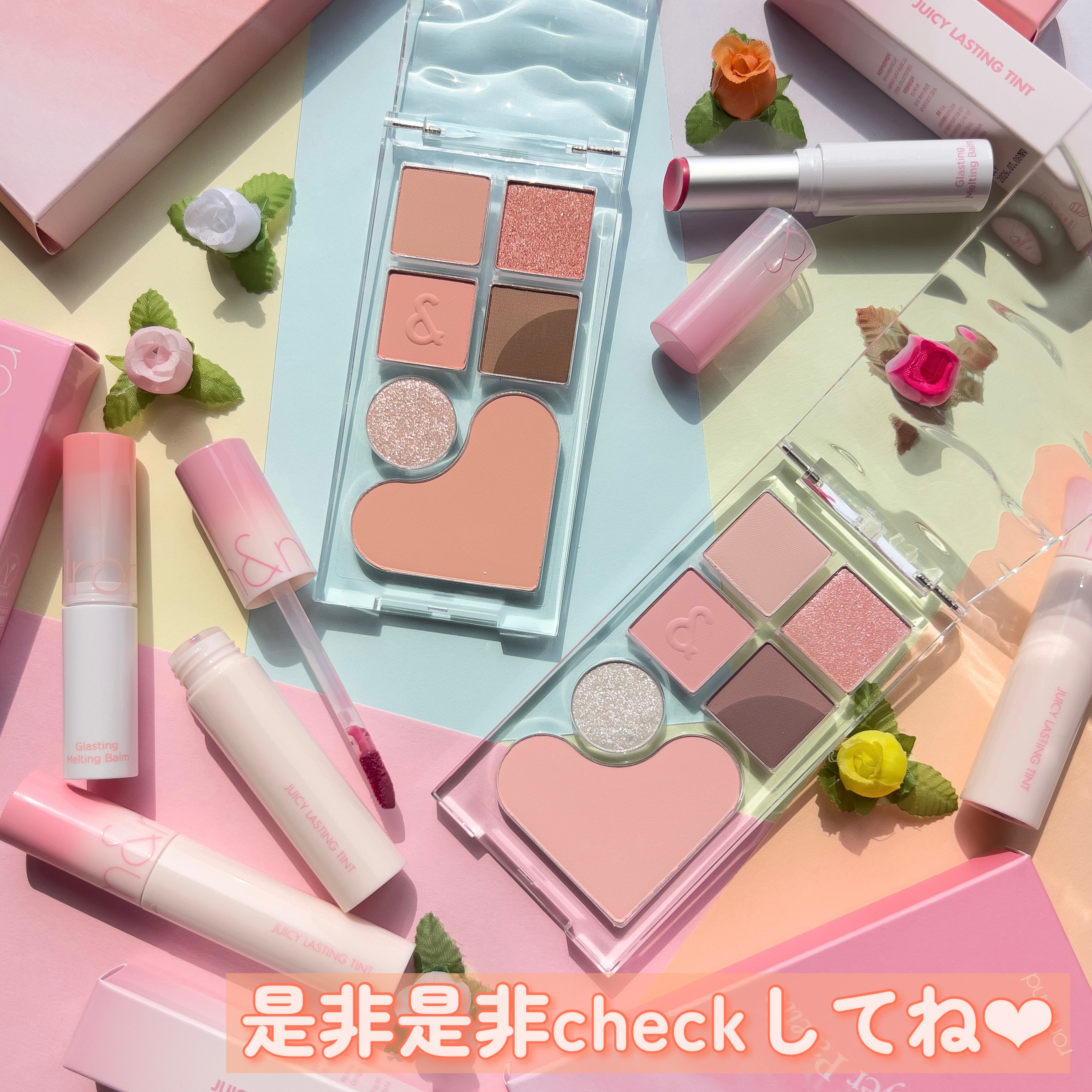 カワイイrom&nd合わせ🍇🥥を見つけてしまった🥹グラスティングメルティングバーム01を塗った上にジューシーラスティングティントの25を塗るととってもかわいい😆💕ザ・イエベカラーとザ・ブルベカラー、意外と合う✨✨🤍 🤍 🤍 🤍 🤍🥥rom&n...