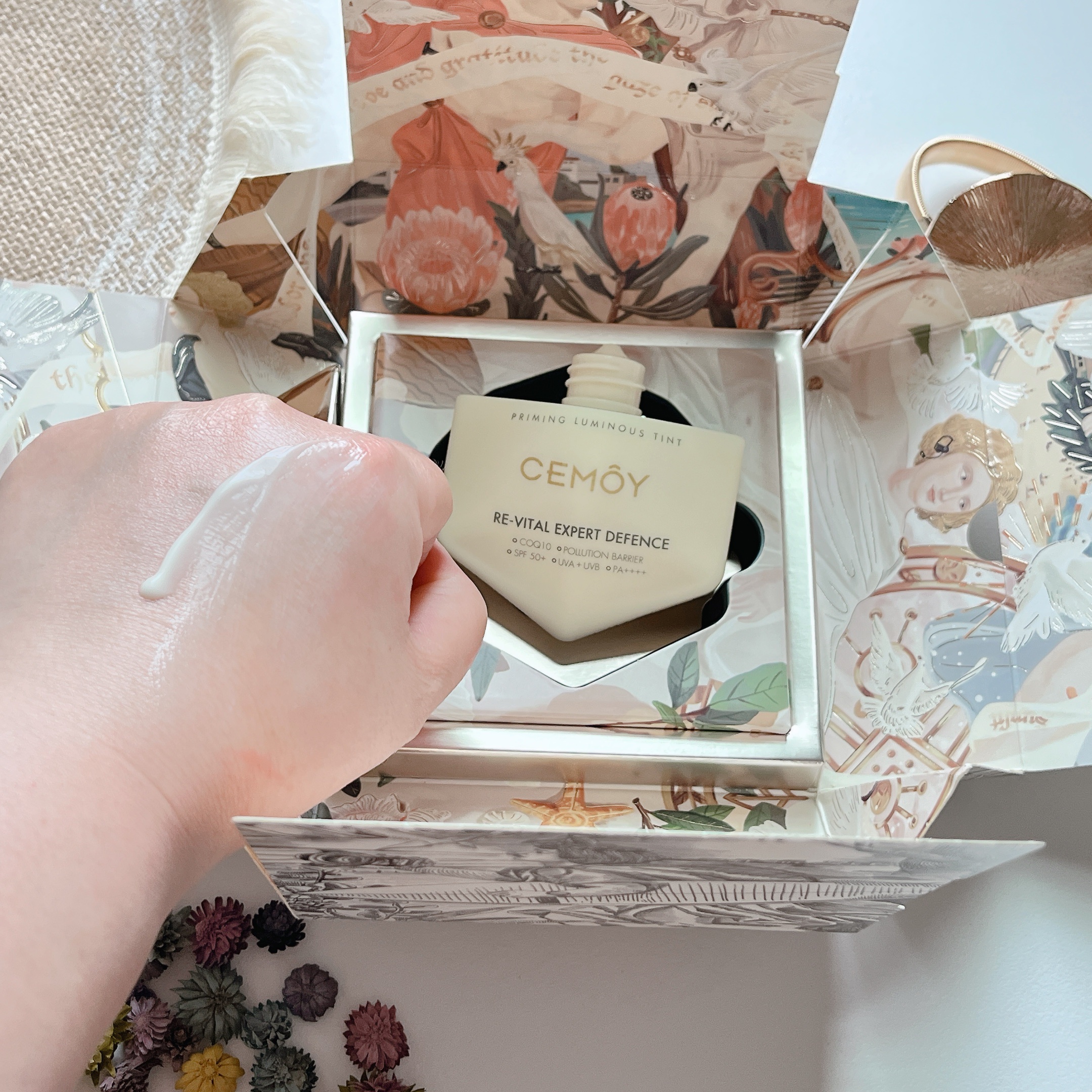 なんといってもパケがもう可愛いすぎて!!! だまし絵みたいなBOXに上品で豪華なデザインはギリシャ神話をテーマにしていて飾って置くだけでも素敵…✨ ボトルもダイヤモンドのような形💎な日焼け止めはミルクのようなテクスチャーで白浮きも気にならずベタつかない軽い塗り心地◎ さらっとしていますが自然なツヤとうるおいも感じられるので朝の使用やお家時間、在宅ワークにもスキンケア感覚で使えます🫶 高機能なUVケアはプレゼントにもオススメです🎁