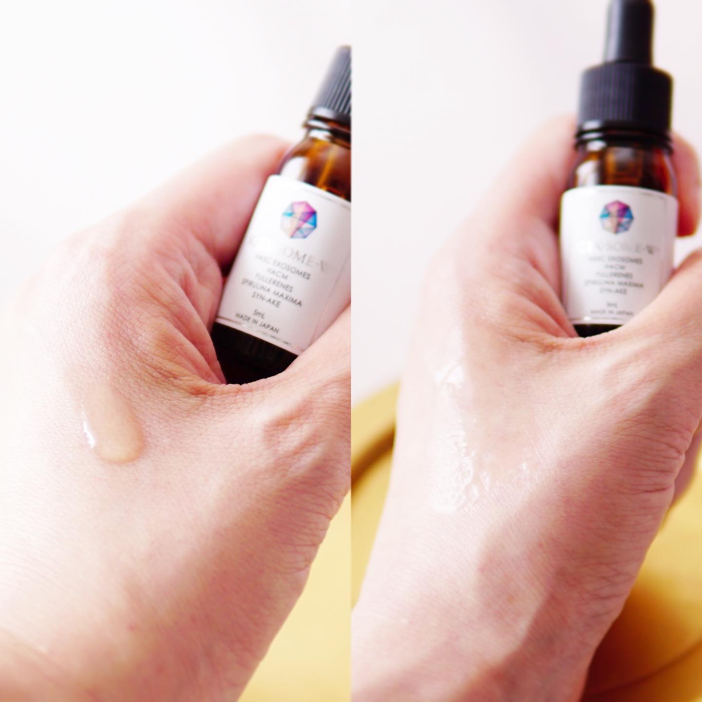 お肌のしわ・ほうれい線・肌荒れ・シミなど、気になる部分にアプローチしながら、肌本来のチカラを引き出していく次世代の美容液です。 再生医療の分野で用いられる先端美容成分*1配合美容液・ヒト脂肪間質細胞エクソソーム*1・ヒト脂肪由来幹細胞培養上清液*1・フラーレン*2を高濃度*3配合 フリー成分〇パラベンフリー〇界面活性剤フリー〇エタノールフリー〇合成着色料フリー〇合成香料フリー 使用方法は朝晩の洗顔後、気になる部分に1滴! とろーっとしたテクスチャで肌馴染みが良くかったです♡ ポレーション等の導入機との併用がオススメだそうです♡