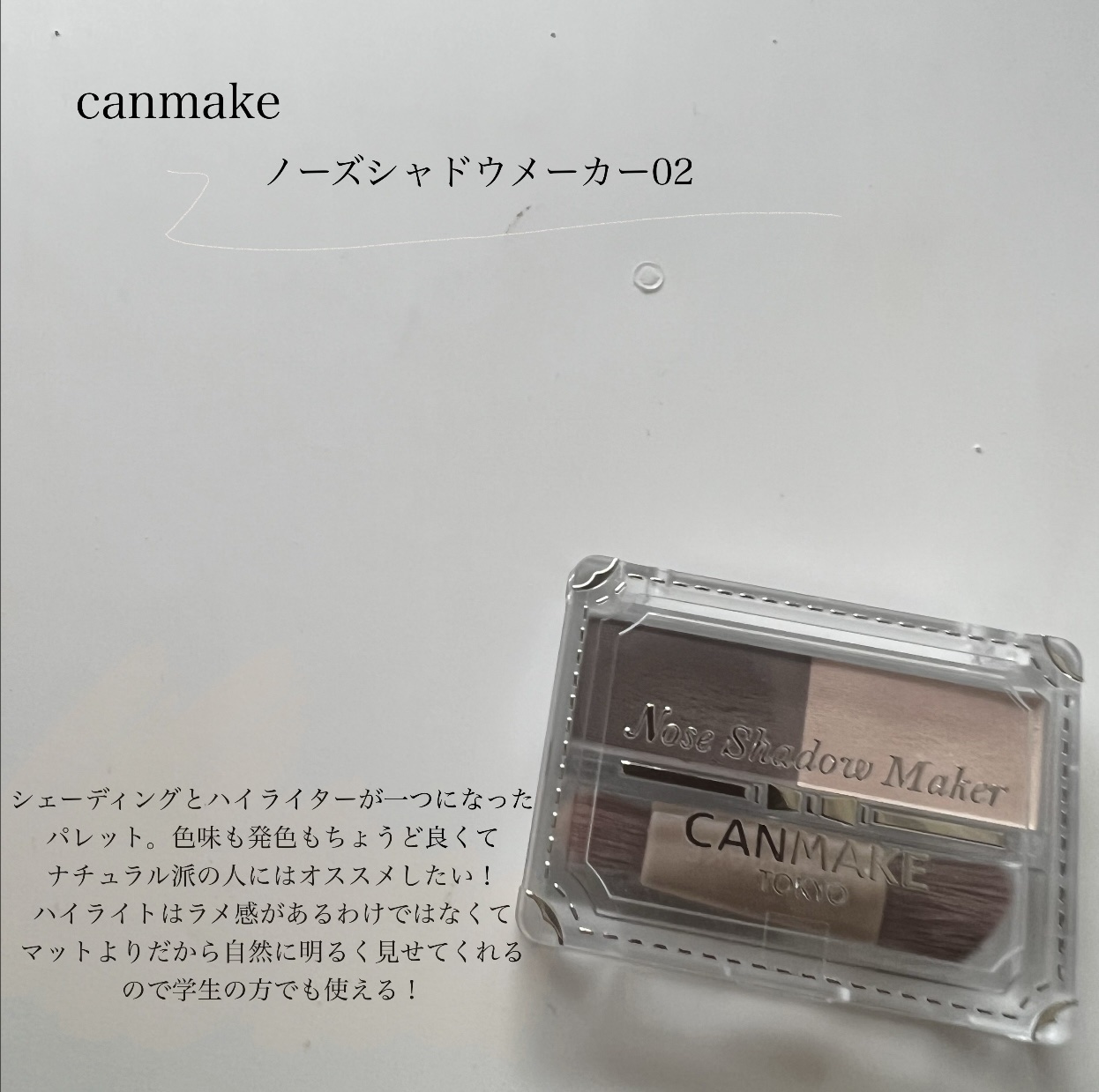 絶妙ナチュラルな影色🩶キャンメイクノーズシャドウメーカー01グレージュイエロー最近ノーズシャドウ入れるの面白い!と思ったのでノーズシャドウ買ってみました。小さくて安いのにダブルエンドブラシがついてて驚き。シェーディングになる影色は色名通りマッ...