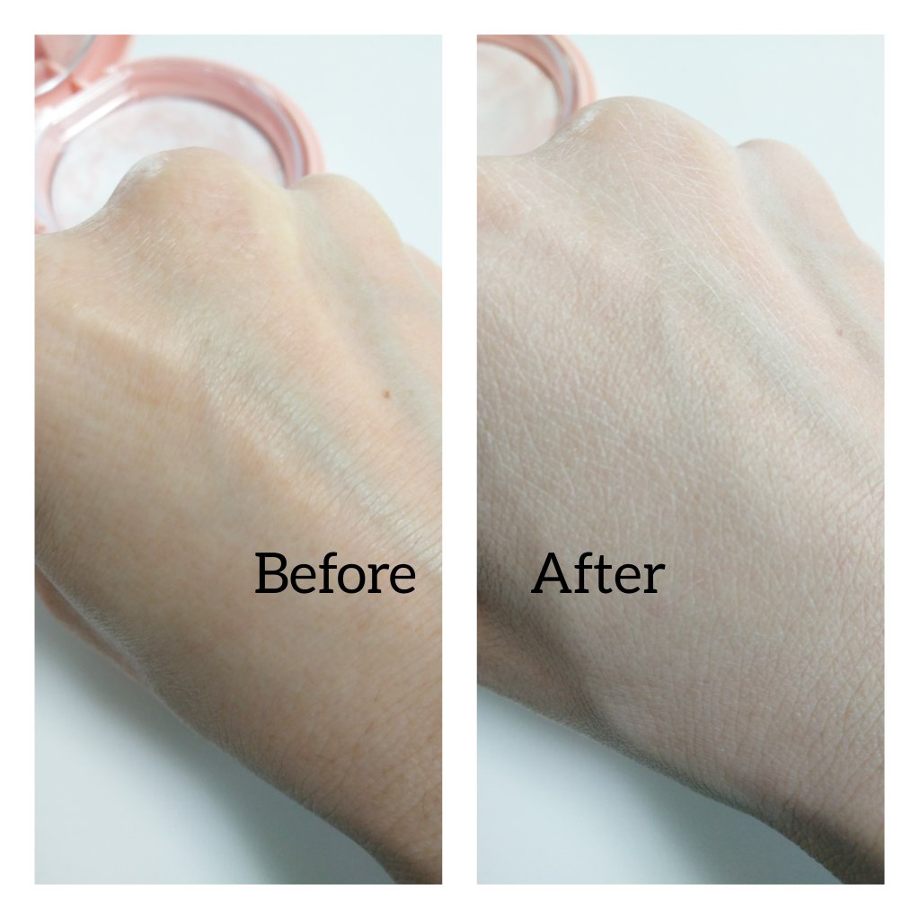 触るとぷにぷに、塗るとサラッとするフェイスパウダー。 ぷにぷになのでパフでそっと取らないと、ベタっとついてムラになりやすいかも。 色は白!私はどちらかというと色白だと思うのですが、それでもかなり顔が白くなってしまいました。 全顔には使えないので、明るくしたい所に部分使いしてみようかな。